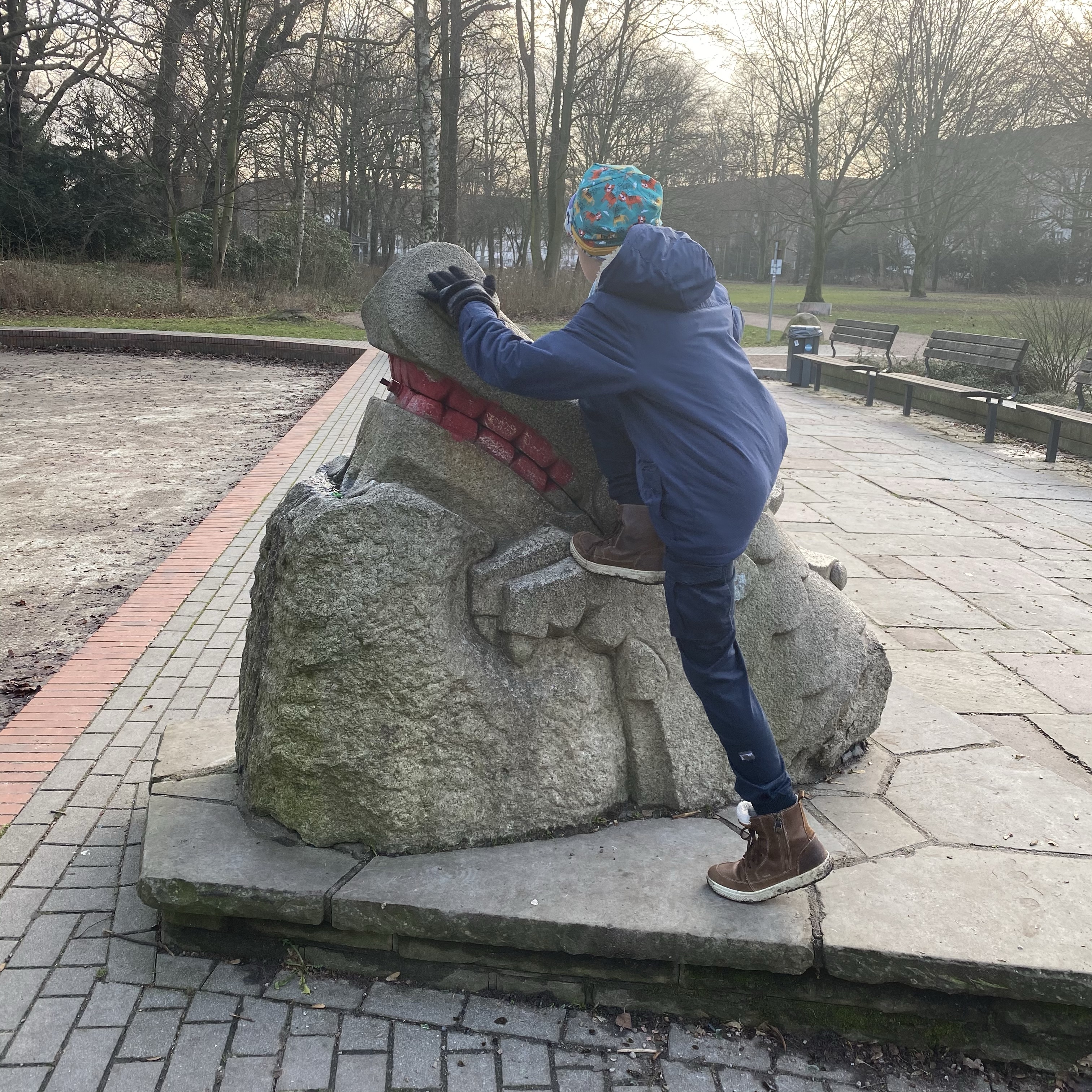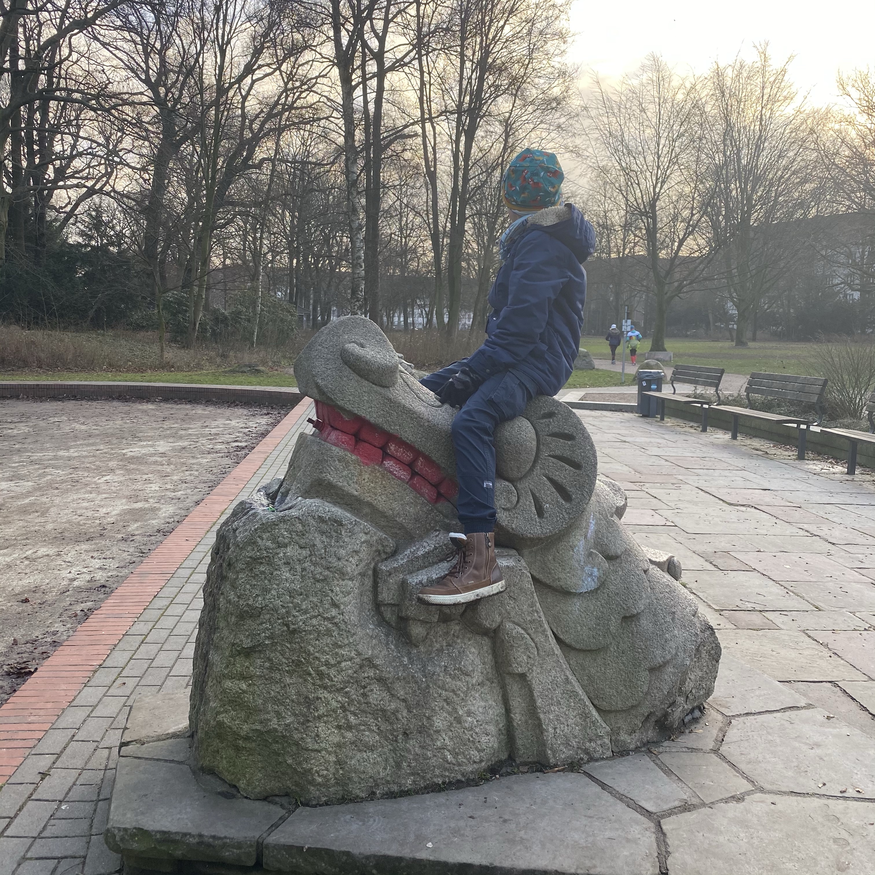 [Kurz darauf. kneteeis:] „Guck mal, da hat jemand die Zähne vom Drachenkopf rot angemalt.“