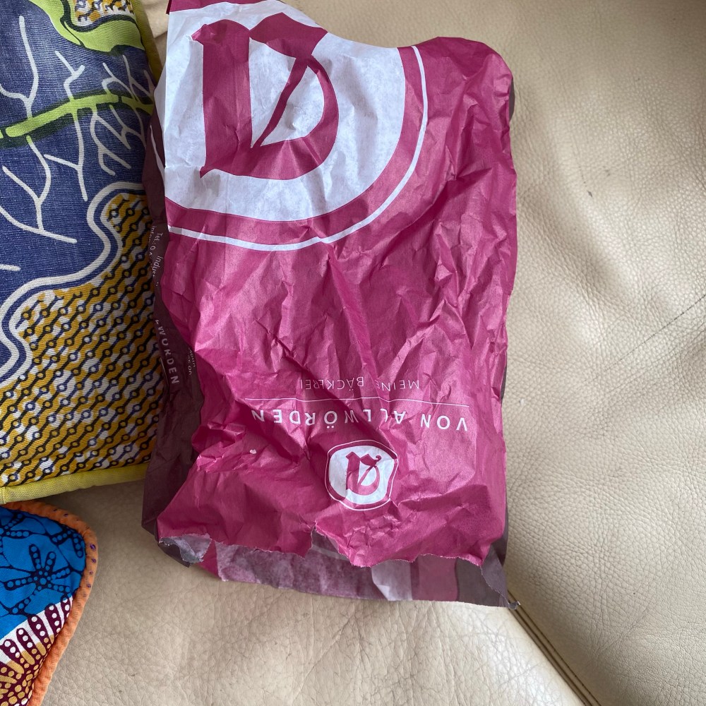 [Kurz darauf. kneteeis:] „Hier liegt übrigens noch die Tüte von Deiner Streuselschnecke. Die musst Du bitte noch wegräumen.“