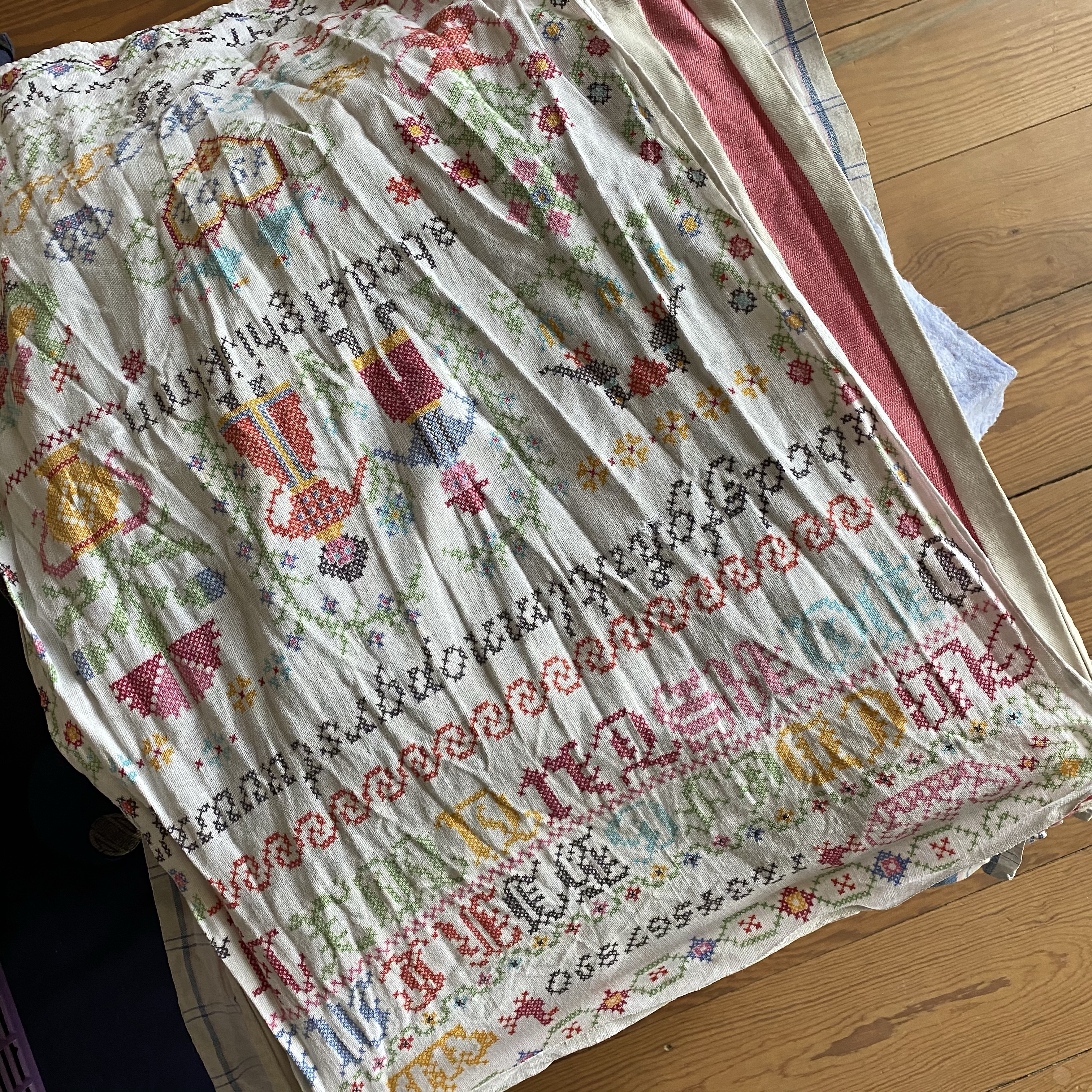 [GJ, aus einem anderen Zimmer rufend:] „Werden die Putztücher eigentlich auch gebügelt?“