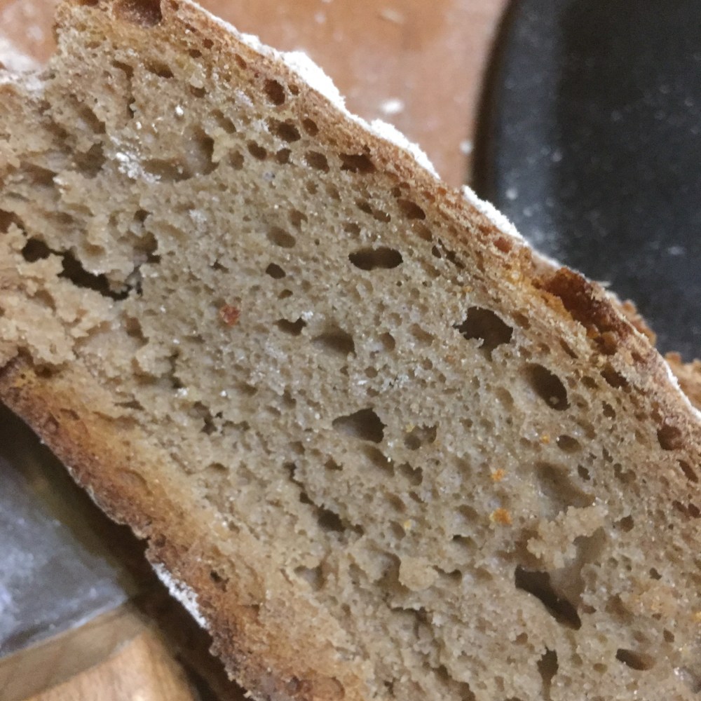 [folienstern:] „Ha – diesmal ist das Roggenbrot fast nicht klitschig geworden!“