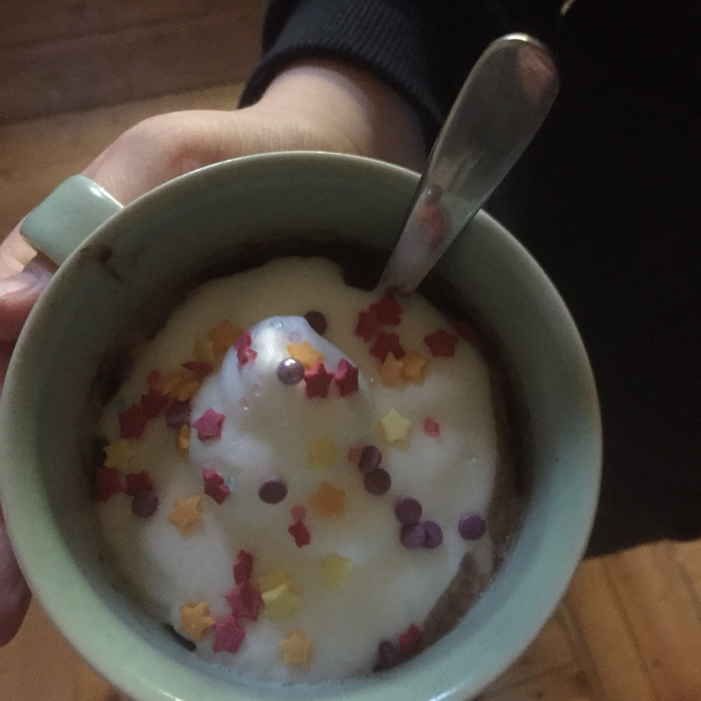 [KM:] „Mama, guck mal! Ich habe mir einen Kakao gemacht, und jetzt sieht das voll schön aus!“