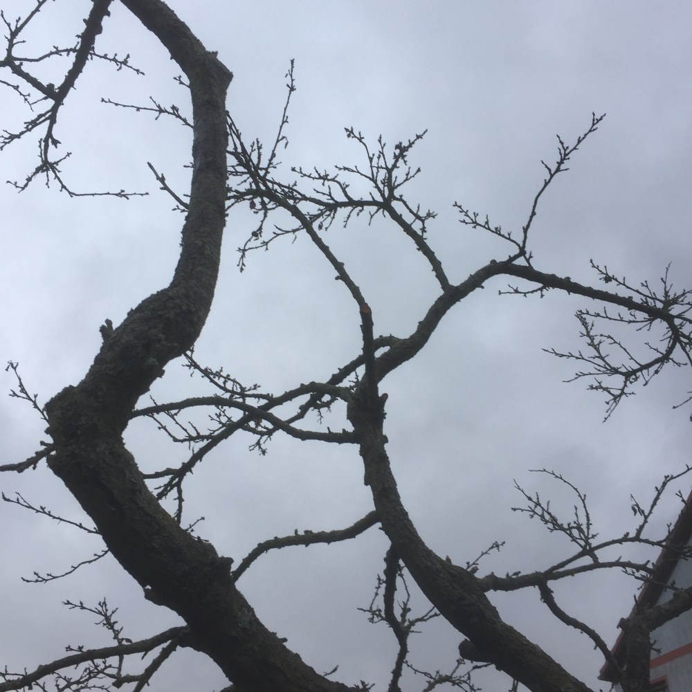 [folienstern:] „Ach, cool, der Mirabellenbaum sieht jetzt richtig fit aus, nachdem Gärtner da war. Gute Entdeckung!“