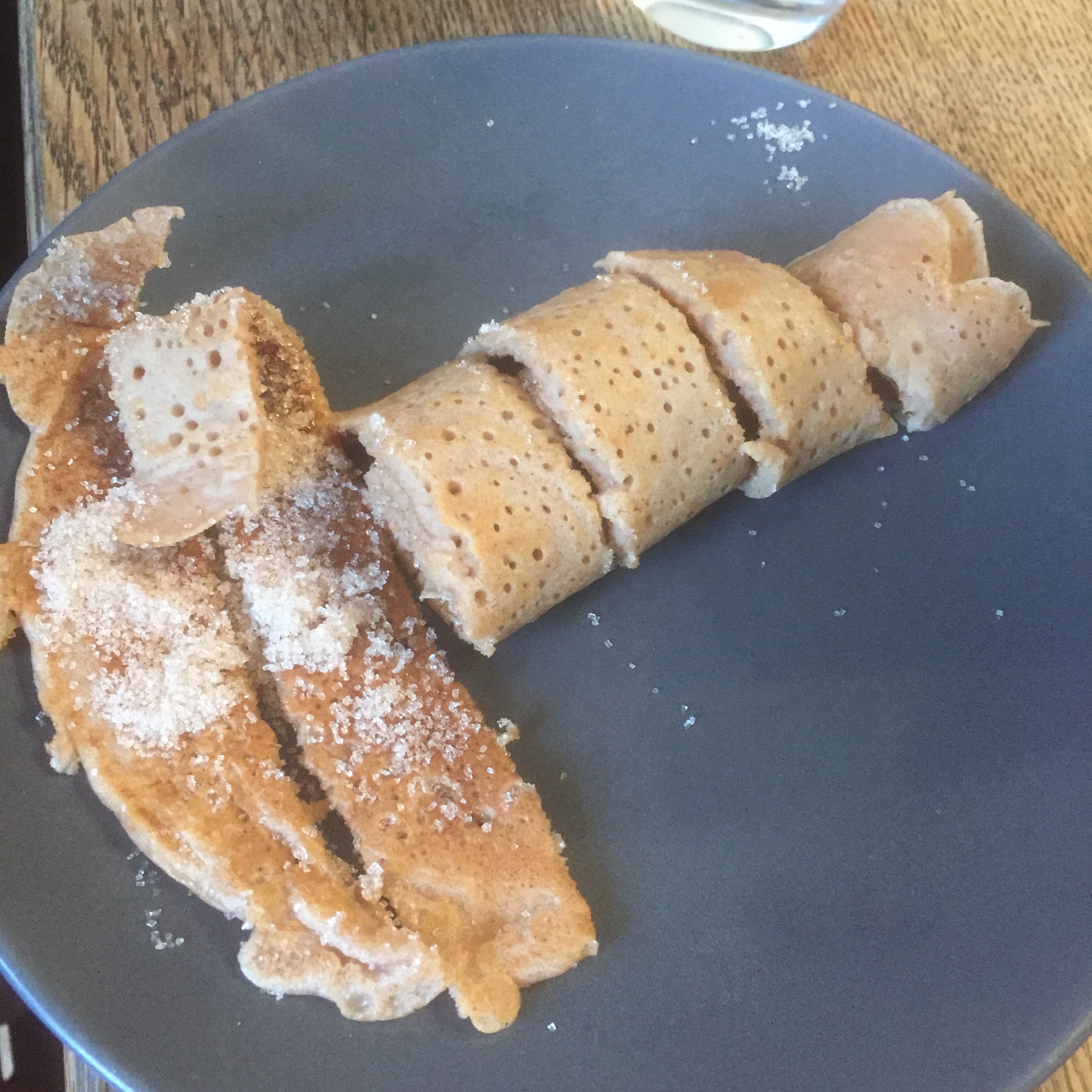 [folienstern:] „Hier, probiert mal. Das sind die veganen Pfannkuchen.“