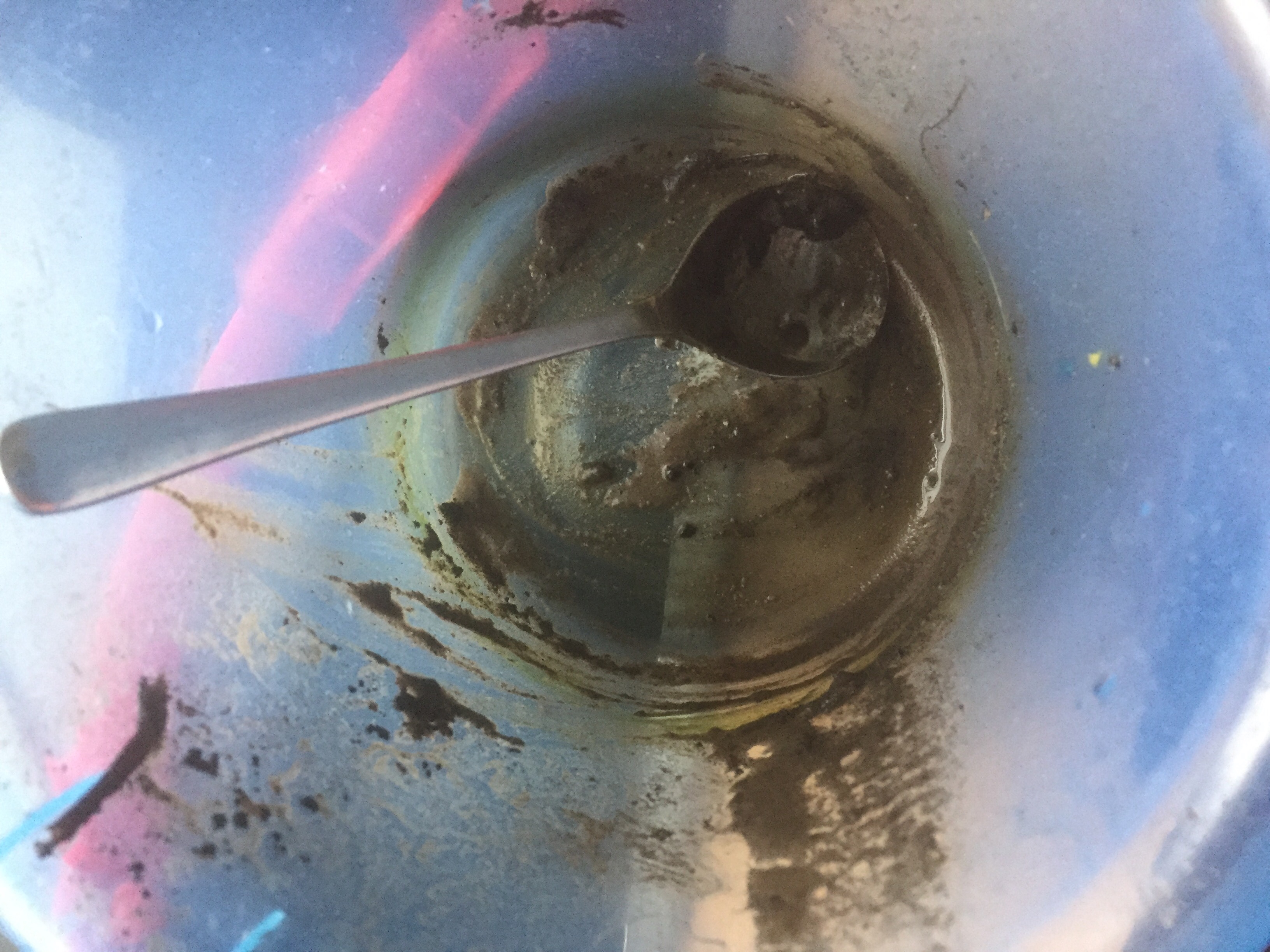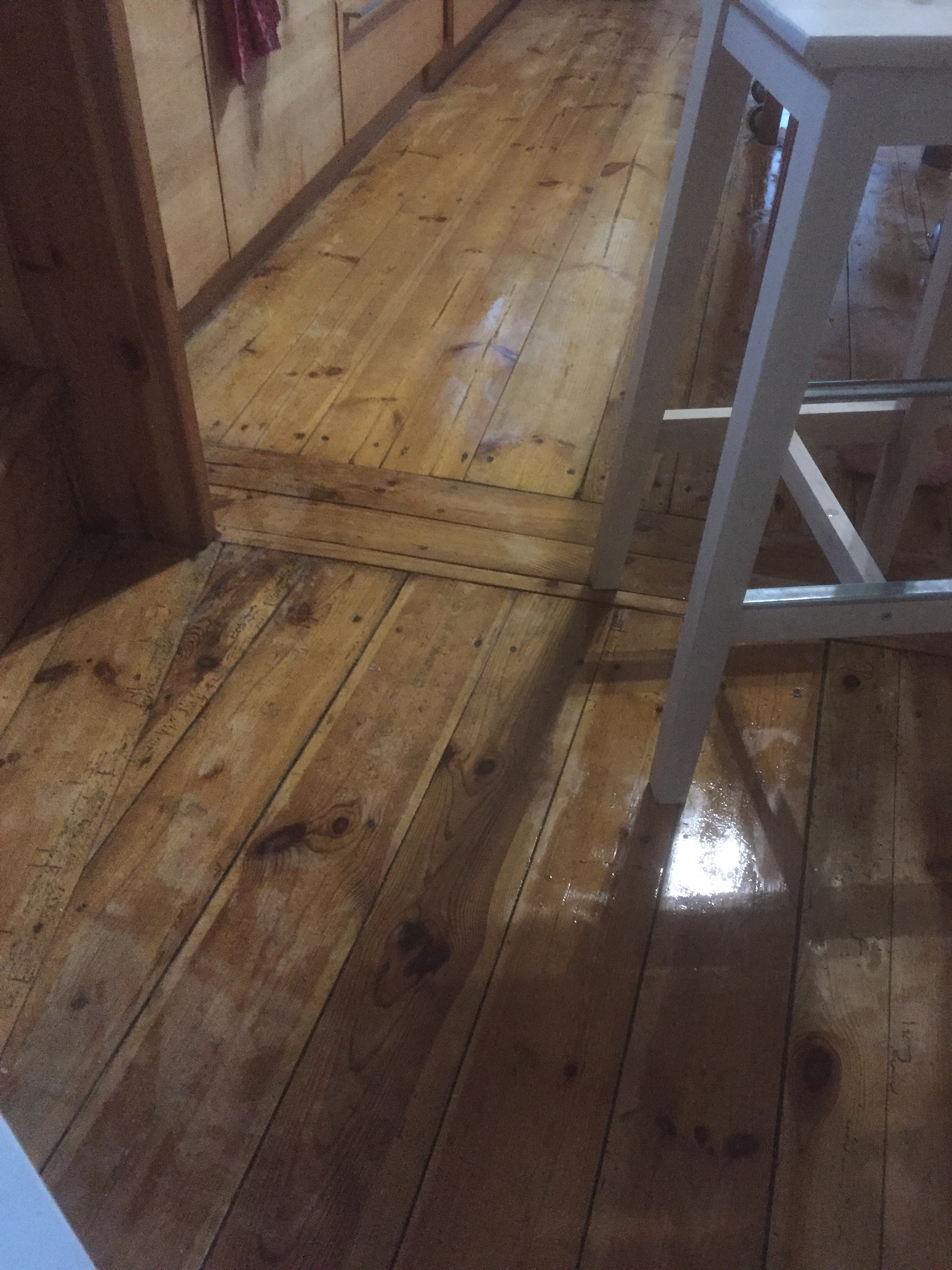 [KJ:] „Mama, komm mal! Ich hab alles ganz schön gewischt! Nur der Eimer war dreckig, jetzt müsst Ihr das Waschbecken sauber machen.“