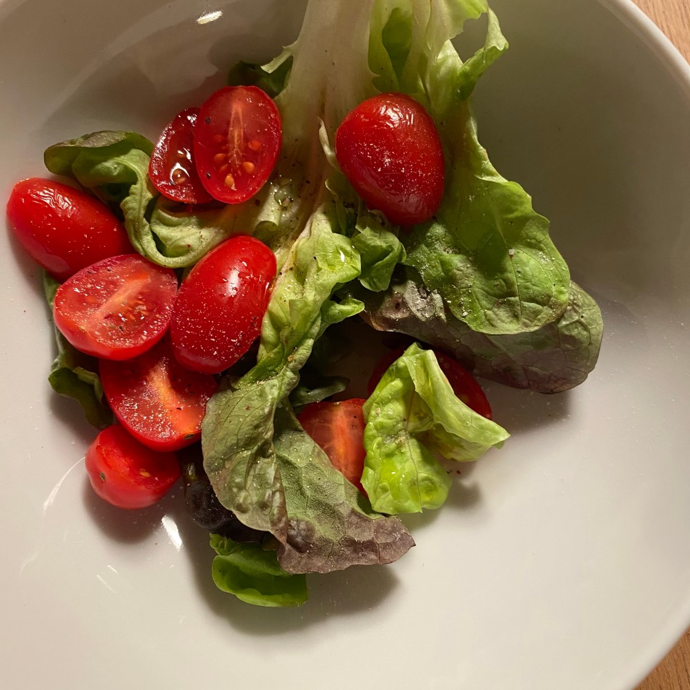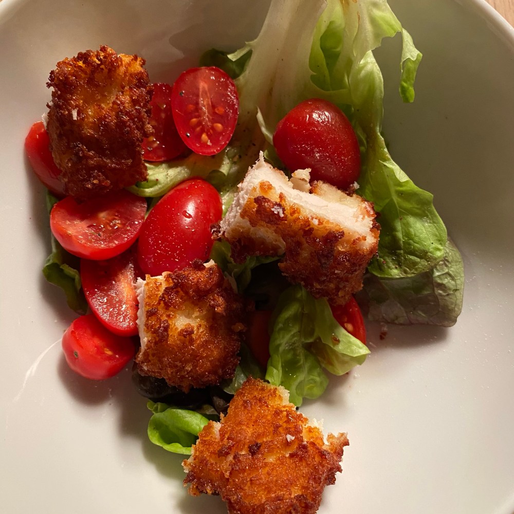 [Etwas später. GJ:] „Weißt Du was? Ich habe doch keine Lust auf Chicken Nuggets. Die sind mir heute zu fettig. Ich mache mir einen Salat, und dann schneide ich da 1-2 Nuggets rein.“