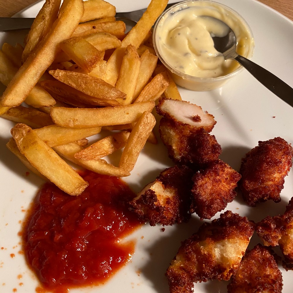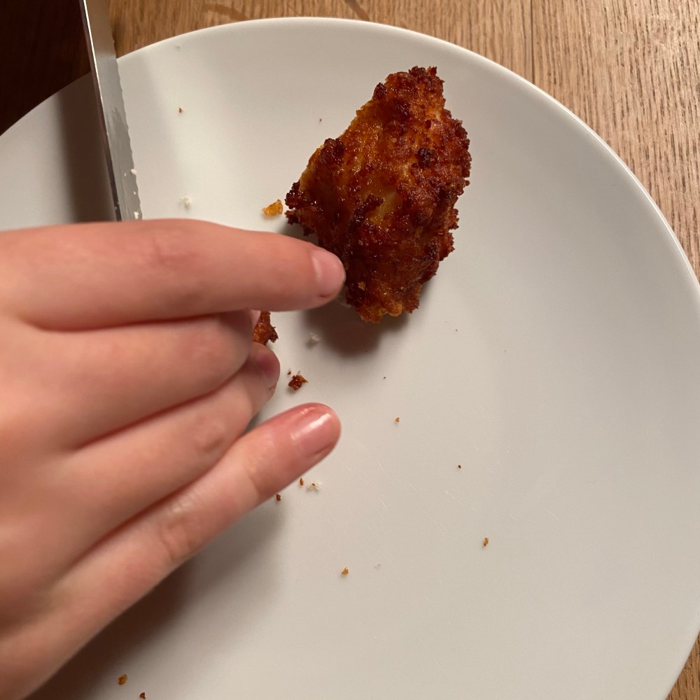 [kneteeis:] „Guck mal: Ich habe uns zum Abendessen die restlichen Chicken Nuggets und Pommes gemacht!“