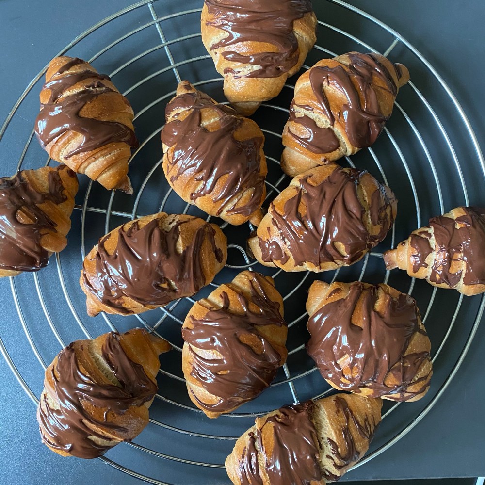 [kneteeis:] „Ich backe mal die Hörnchen mit dem Schoko-Karamell-Müsli drin fertig.“