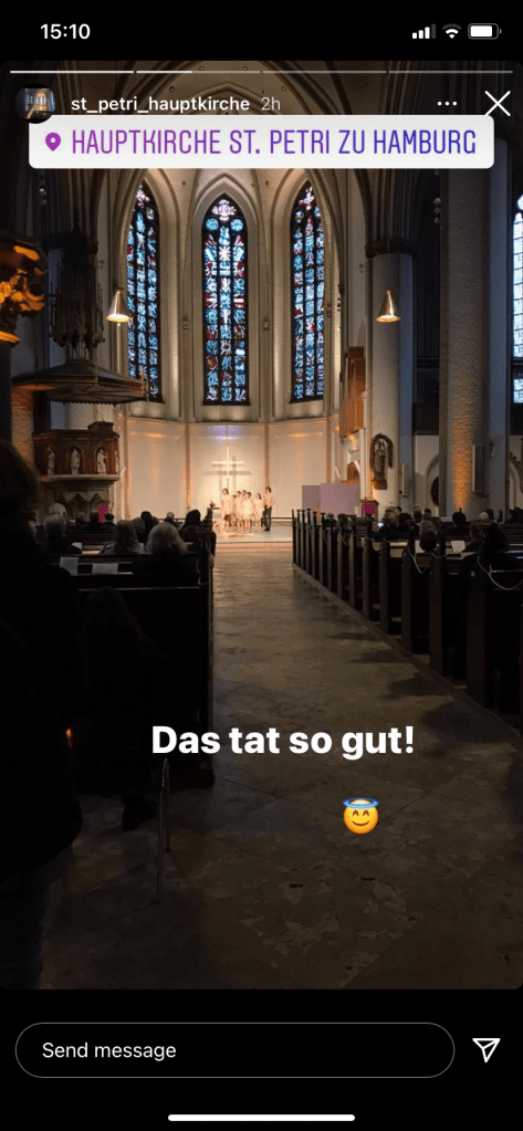 [Etwas später. GJ:] „Guck mal! Auf dem Post von der Petri-Kirche auf Instagram kann man sogar unsere Hinterköpfe sehen!“