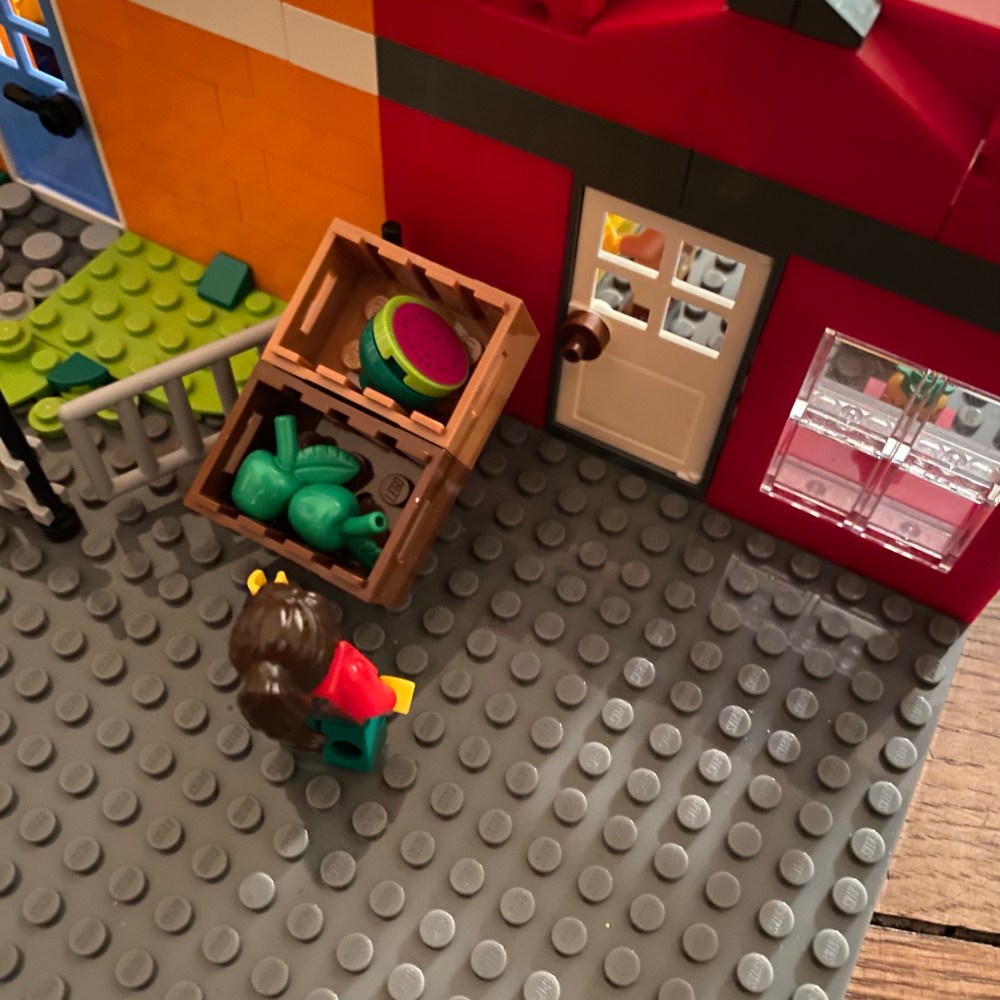 [GJ:] „Das sind zwei Häuser. Das eine ist ein Wohnhaus, das andere ein Gemüse- und Obstladen.“