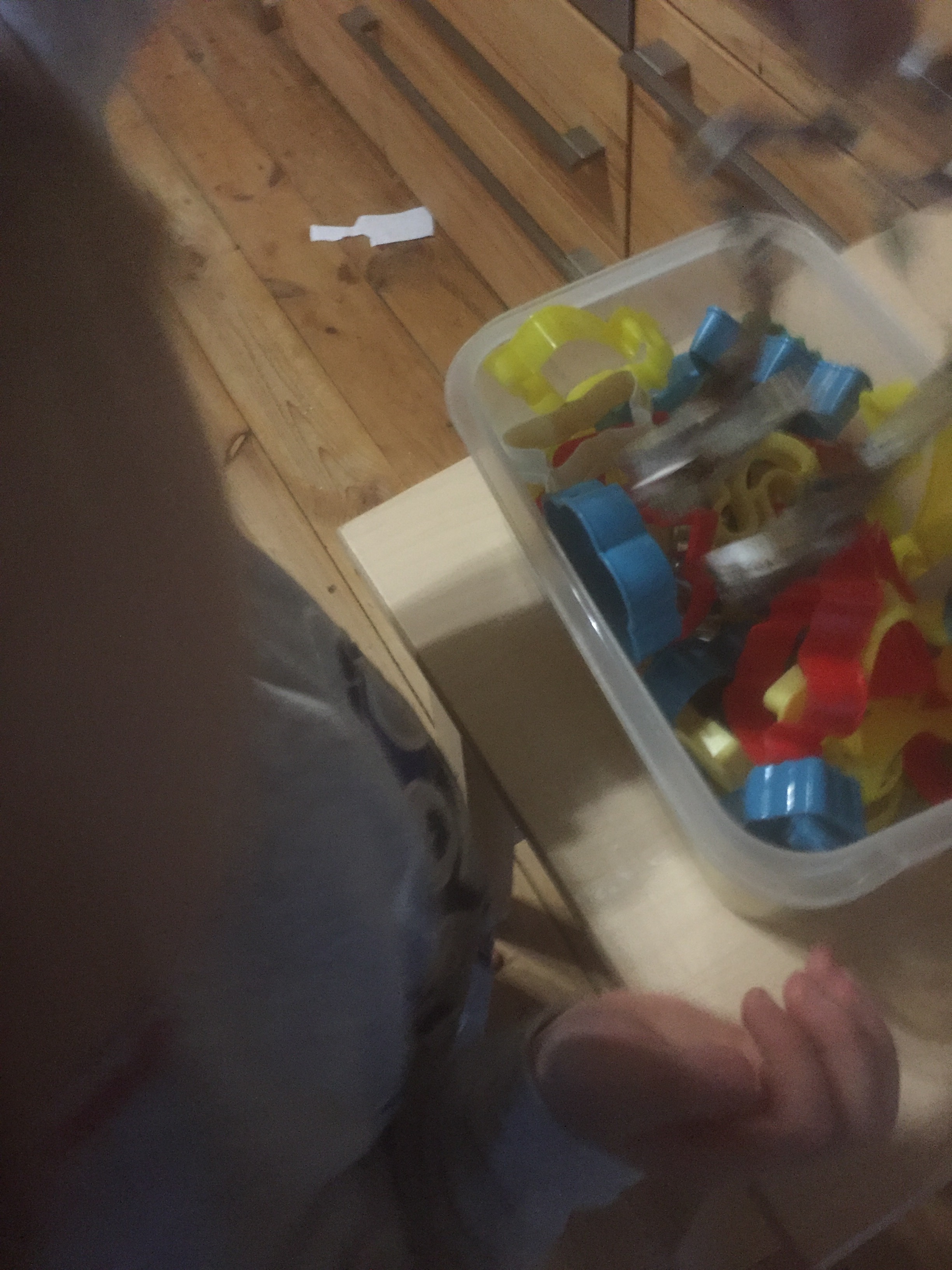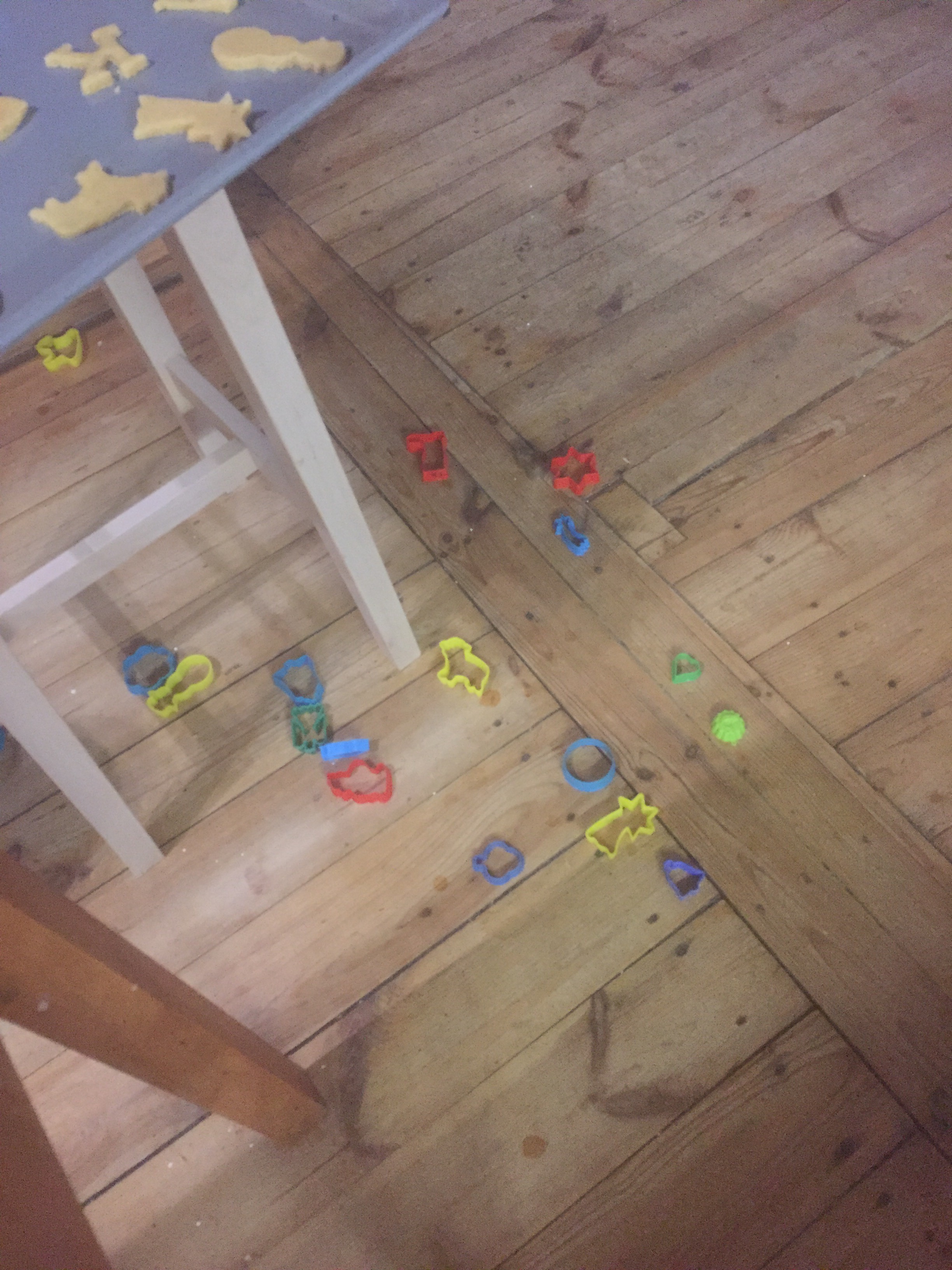 [KJ:] „Oh nein! Alle Förmchen sind auf den Boden gefallen! Aber nicht mit Absicht. Ich mache jetzt eine kleine Sternschnuppe. Wenn eine kleine Sternschnuppe fällt, kann man sich einen kleinen Wunsch wünschen.“
