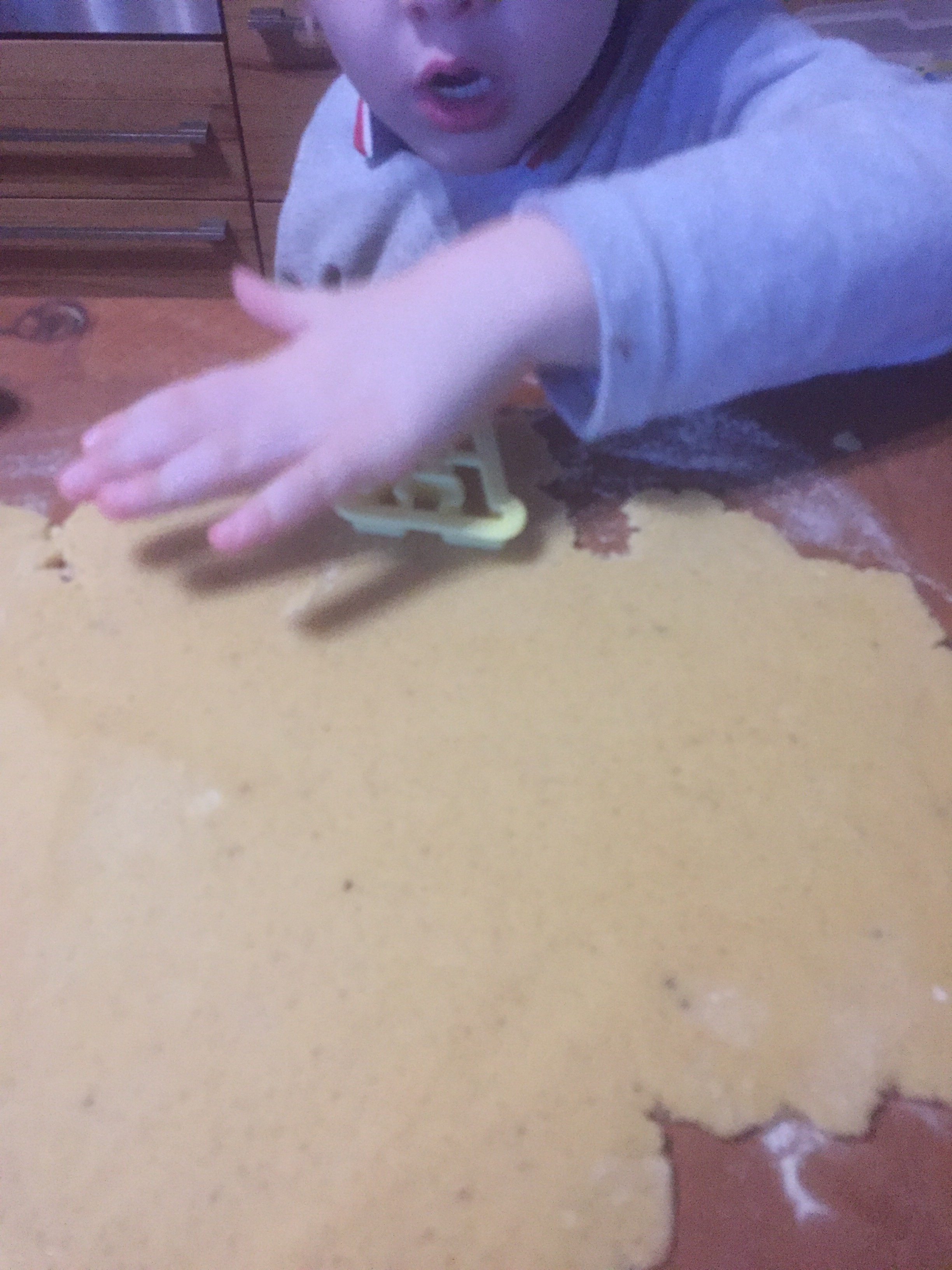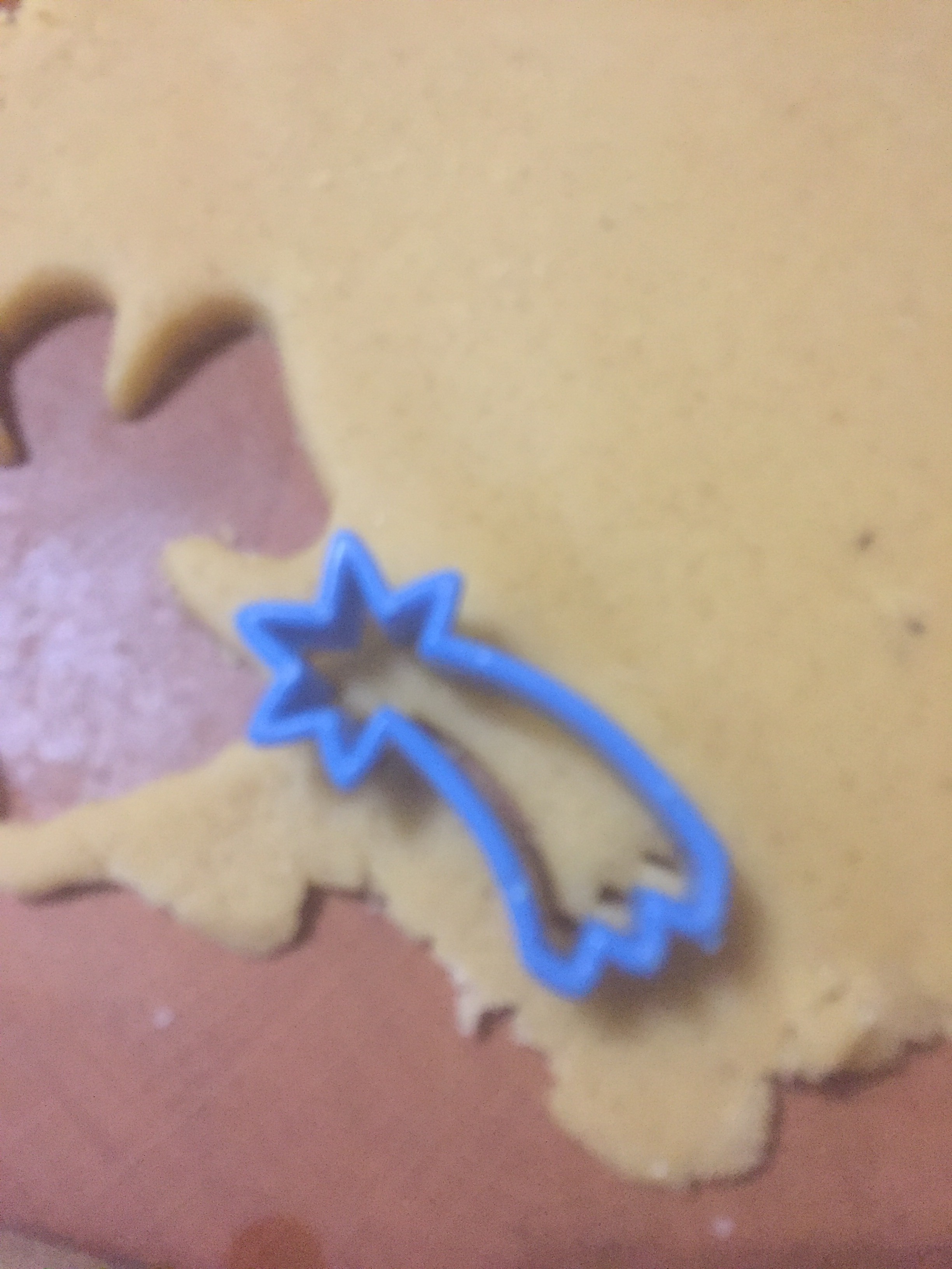 [folienstern:] „Okay, dann machen wir den schnellen Teig. [Etwas später. ] Hier – Du kannst ausstechen.“