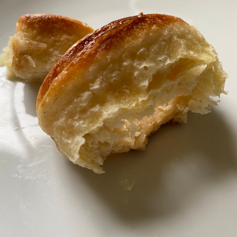[GJ:] „Puh, ich bin schon satt. Die selbstgebackenen Franzbrötchen machen sooo satt – und sind sooo lecker!“