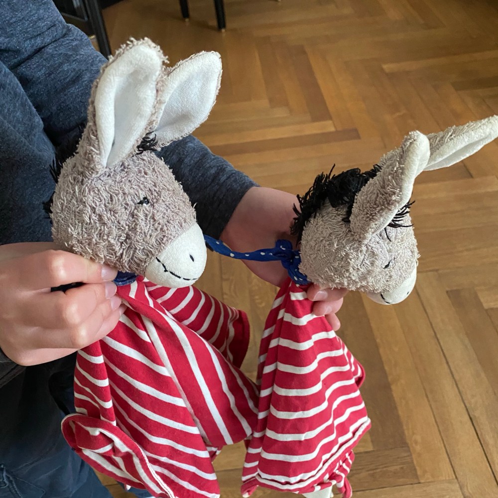[Kurz darauf. GJ:] „Mein Esel will jetzt auch zu Instagram! Er hat sogar schon einen Follower, guck mal!“
