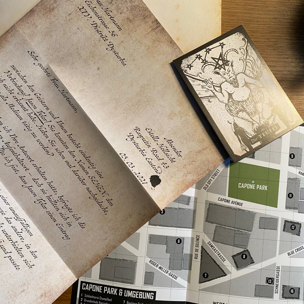 [kneteeis:] „Ah, gut, dass Du wieder da bist! Gestern war der nächste Brief aus Dysturbia im Briefkasten, und wir müssen weiterräteln!“