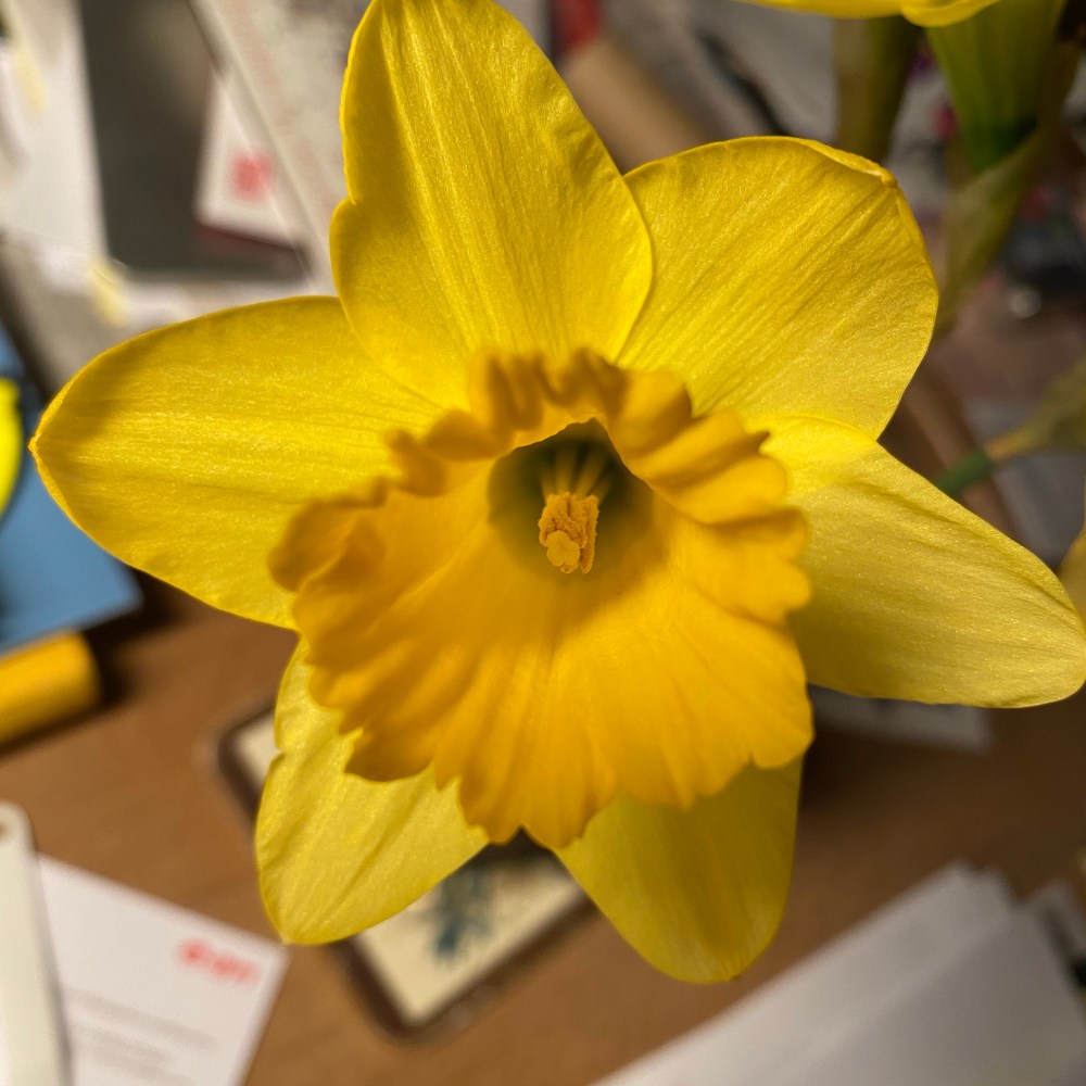 [kneteeis:] „Guck mal, die Narzisse, die wir neulich geschenkt bekommen haben, ist jetzt ganz toll aufgegangen!“