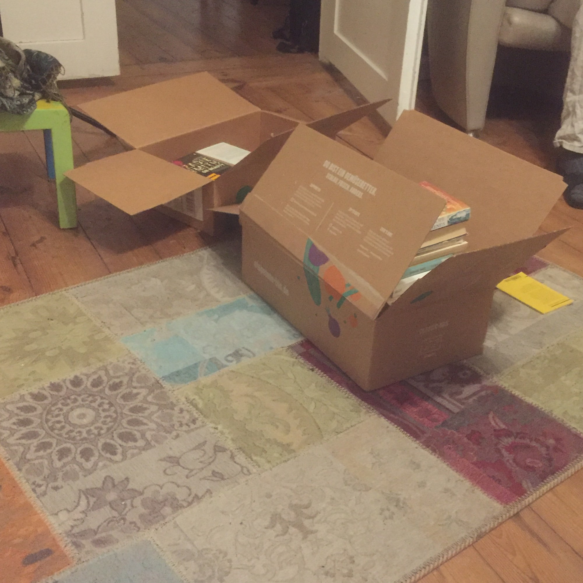 [folienstern:] „Hrmpf, wenigstens ein Teil der Bücher wieder eingeräumt. Aber immerhin, jetzt habe ich gleich zwei Kisten aussortiert, dann hat sich das wenigstens gelohnt!“