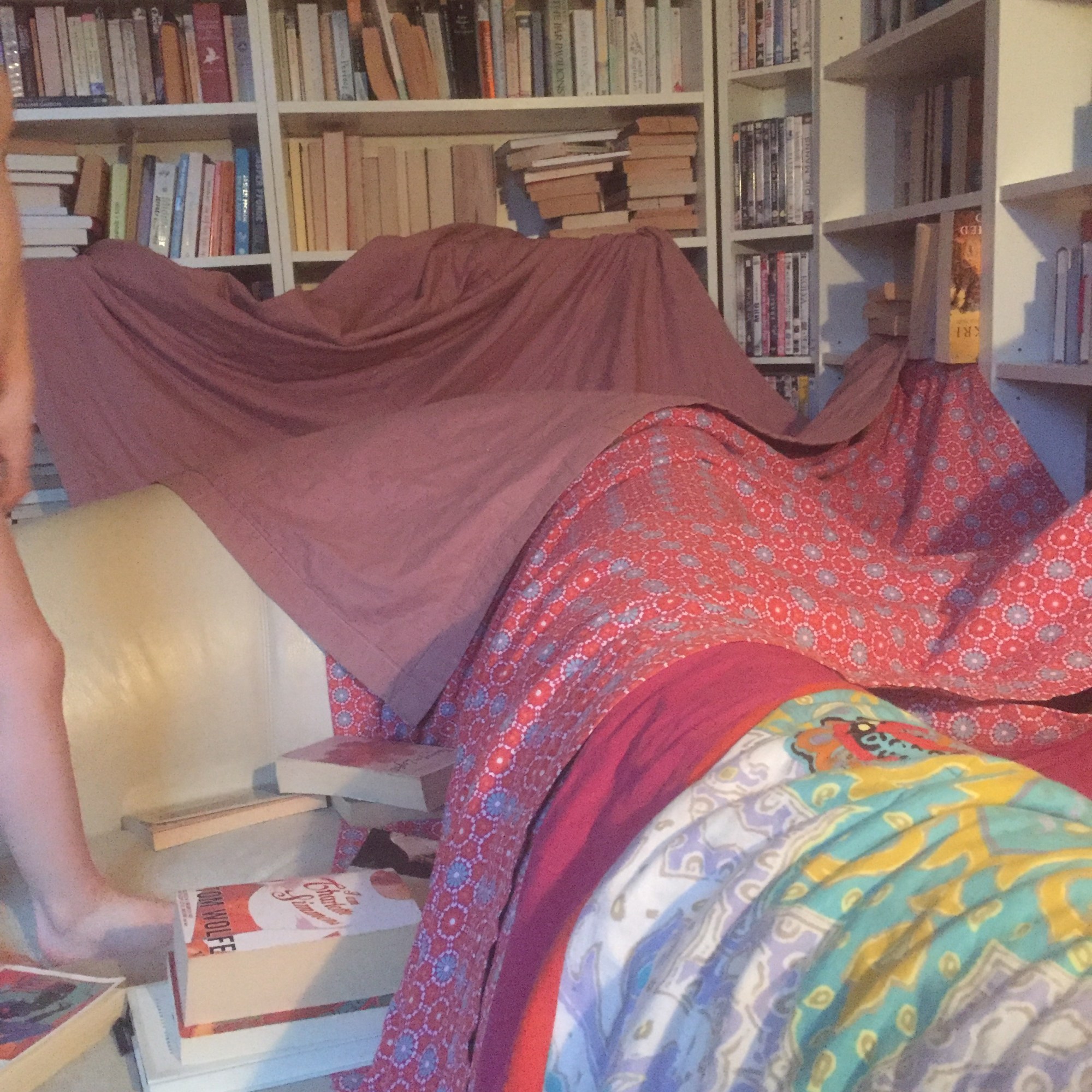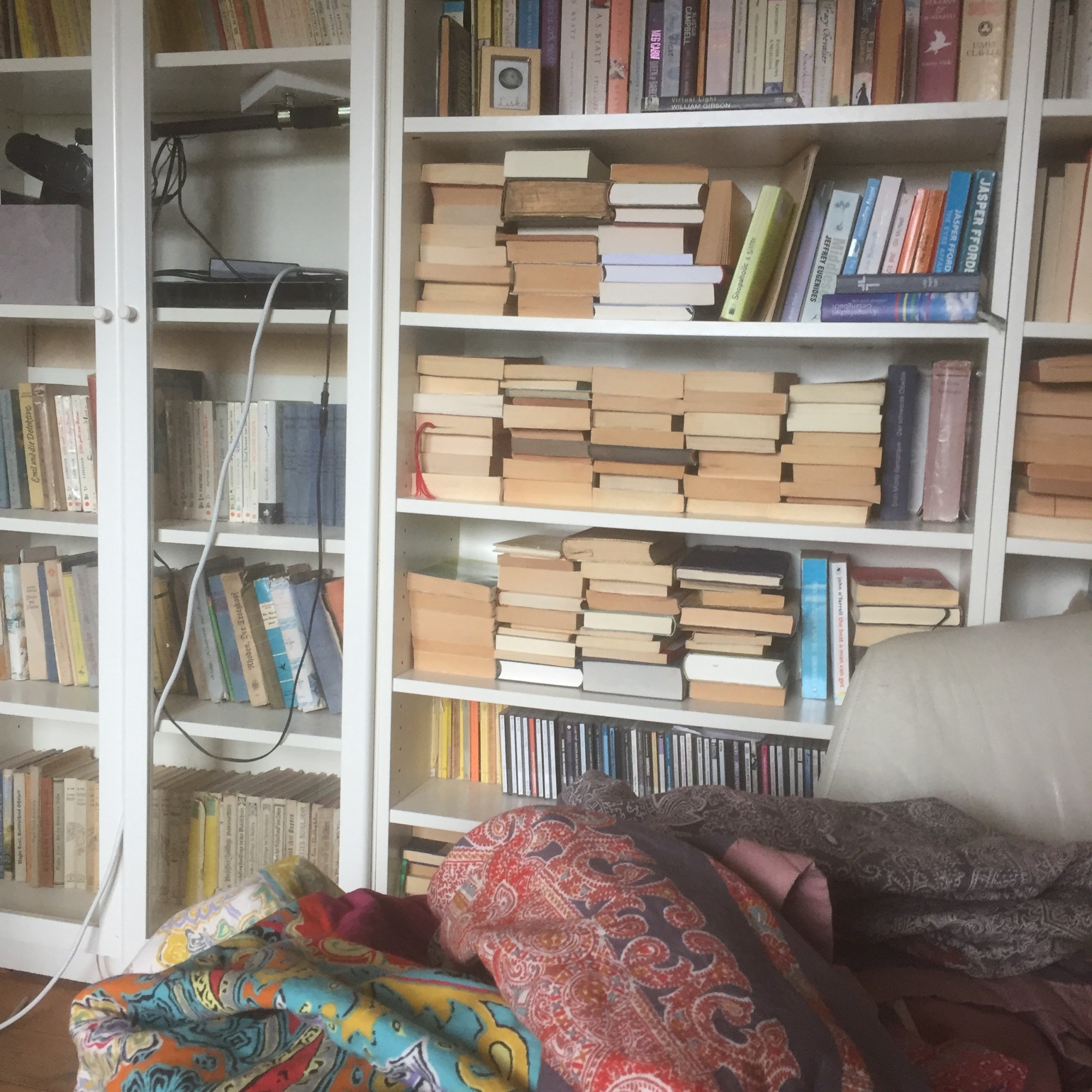 [KJ:] „Guck mal, Mama, ich habe aus Deinen Büchern eine Mauer gebaut. Und dann hat Papa sie wieder eingeräumt.“