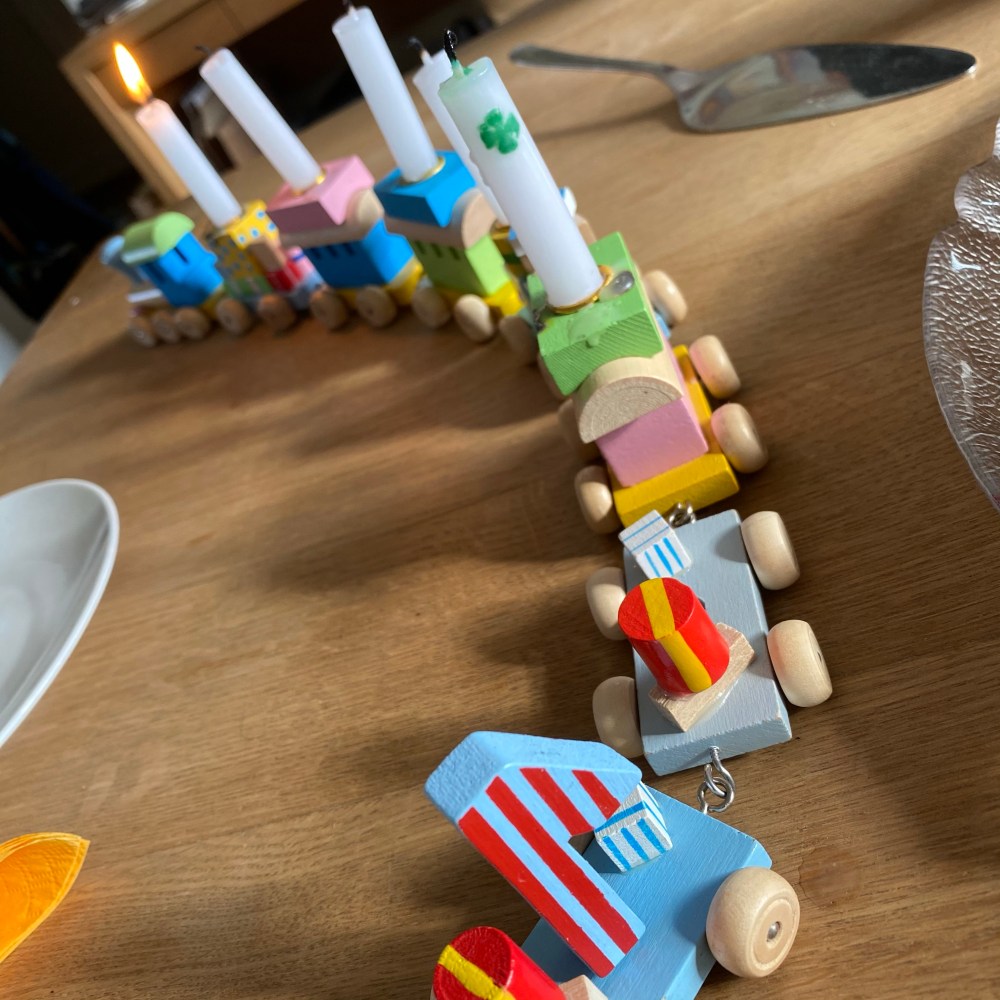 [GJ:] „Ich möchte meinen Geburtstagskuchen selbst anschneiden! Aber erst puste ich noch einmal die Kerzen aus! Guckt mal, jetzt bin ich nur noch ein Jahr alt!“