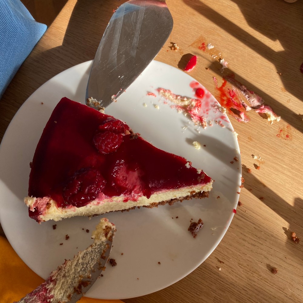 [Kurz darauf. GJ:] „Oh nein! Jetzt ist mir das Kuchenstück vom Tortenheber gefallen! Das war aber nicht mit Absicht!“