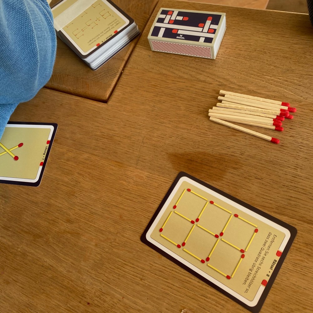 [Kurz darauf. GJ:] „Jetzt machen wir noch ein paar von den Streichholzrätseln, die Opa und Oma mir geschenkt haben!“