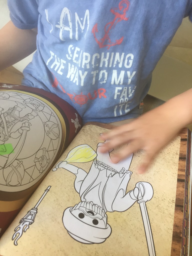 [KJ:] „Ich male jetzt. Die Piraten male ich gold an. Das ist ein besonderer Pirat, das ist der Anführer-Pirat.“