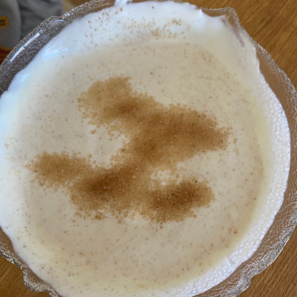 [kneteeis:] „Wir haben noch Apfelmus. Du könntest einen Schwedenbecher machen.“