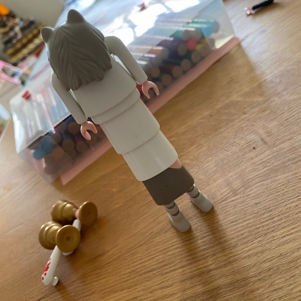 [Kurz darauf. kneteeis:] „Haha, das ist lustig, wie Du die ganzen leeren Playmobilfiguren aufeinander gestapelt hast! Von hinten sieht das aus wie eine ganz große Figur!“