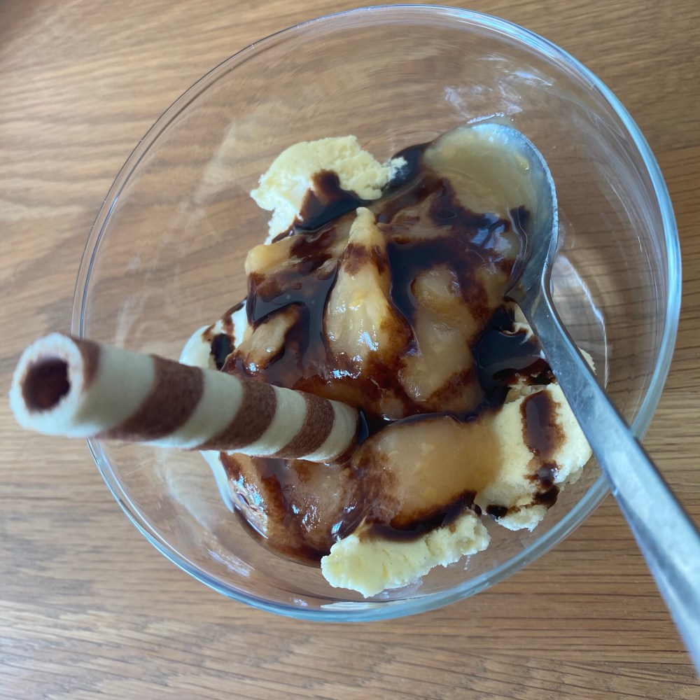 [Etwas später. GJ:] „Jetzt mache ich noch Eis zum Nachtisch!“