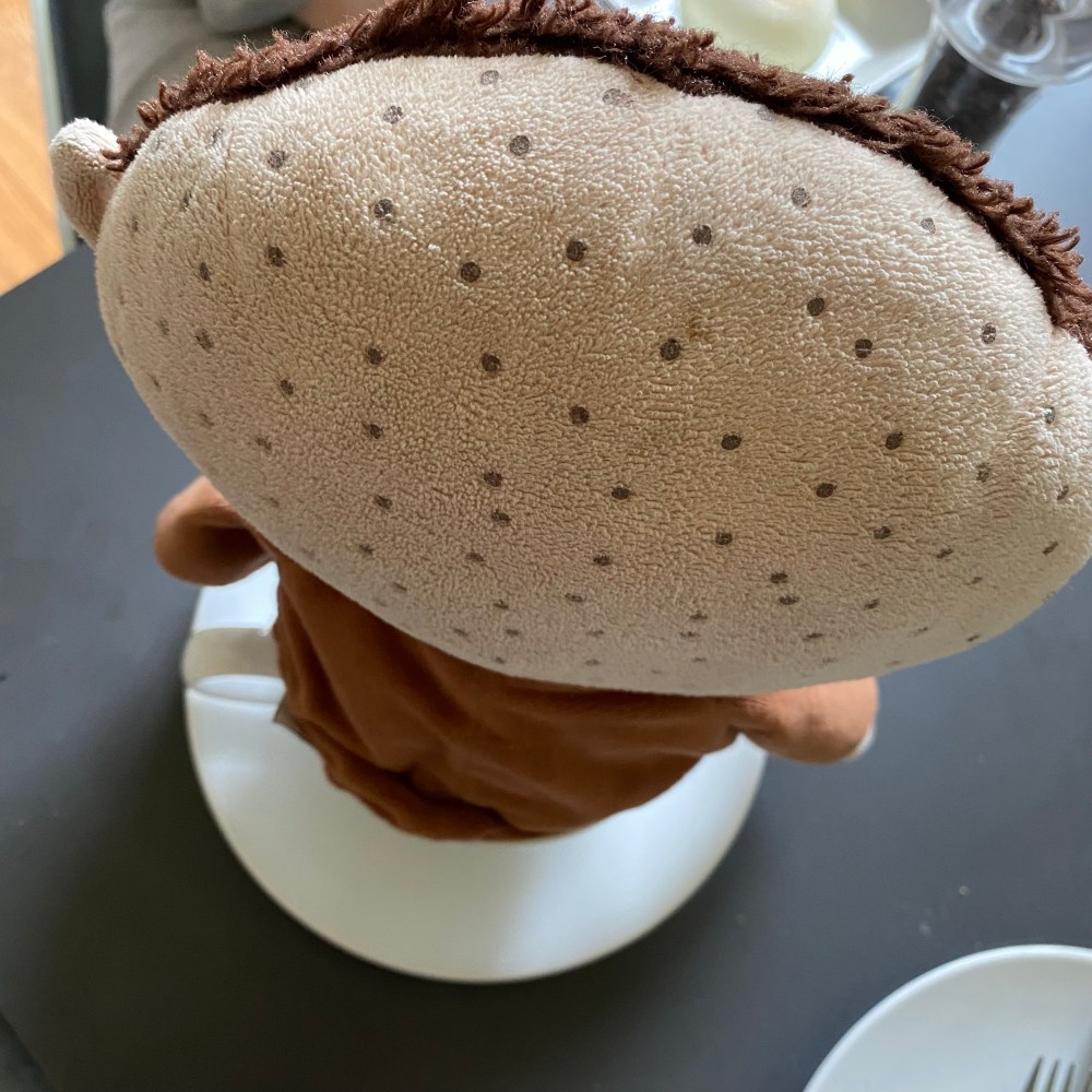 [GM:] „Ja. Mama, das Gummi hier musst Du noch für den Blog fotografieren. Guck mal, die Nase ist an der falschen Stelle!“