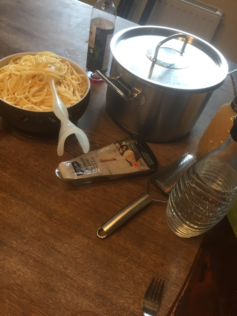 [GM:] „Das ist voll fies, wenn Papa nachmittags kocht. Dann hat man den ganzen Nachmittag Hunger! Ich hab den Tisch gedeckt. Fehlt noch was?“