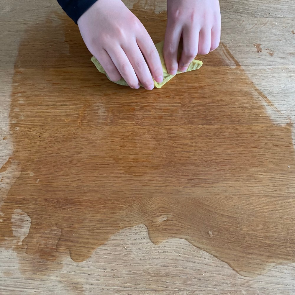 [Etwas später. kneteeis:] „Ach Mensch, jetzt hast Du den Tisch ganz nass gemacht. Holst Du mal einen Lappen und wischst das auf?“