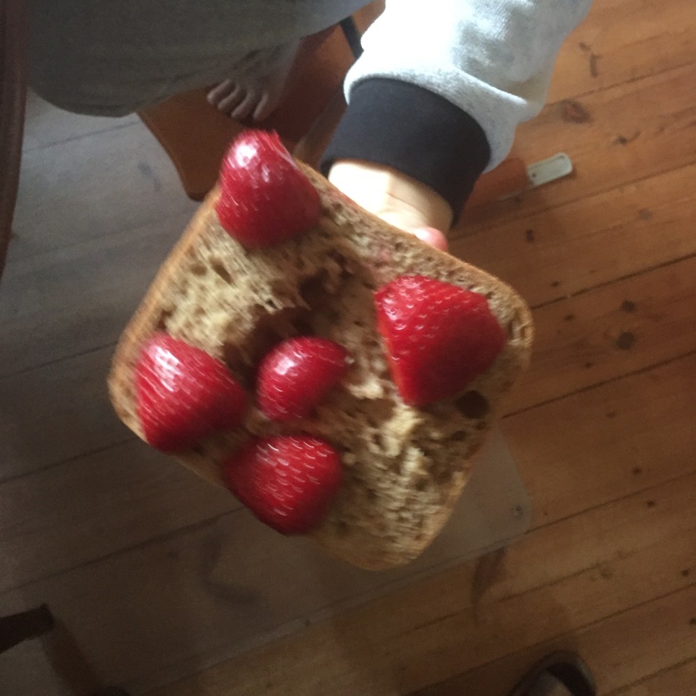 [KJ:] „Guck mal, Mama, ein Erdbeergesicht!“