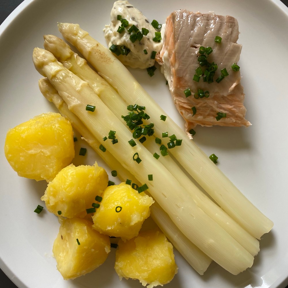 [kneteeis:] „Lachs mit Spargel und Kartoffeln.“