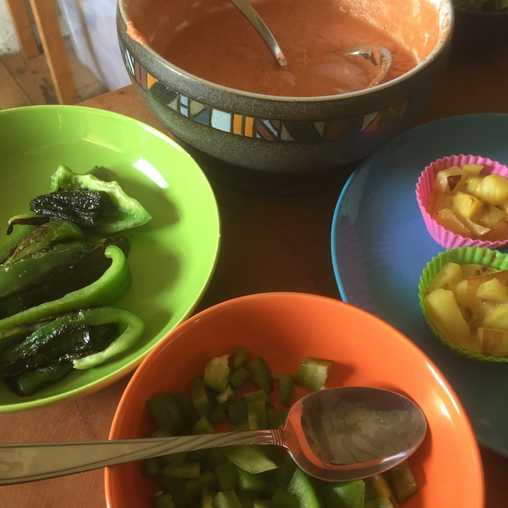 [folienstern:] „Gazpacho und Ofentortilla“.