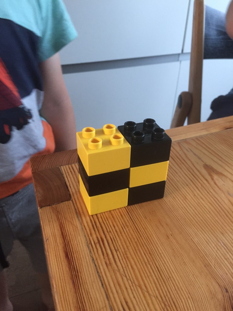 [KJ:] „Guck mal, Mama, das sind zwei Bienen. Die hier mit gelb-schwarz ist die Gute und die schwarz-gelb ist die Böse.“