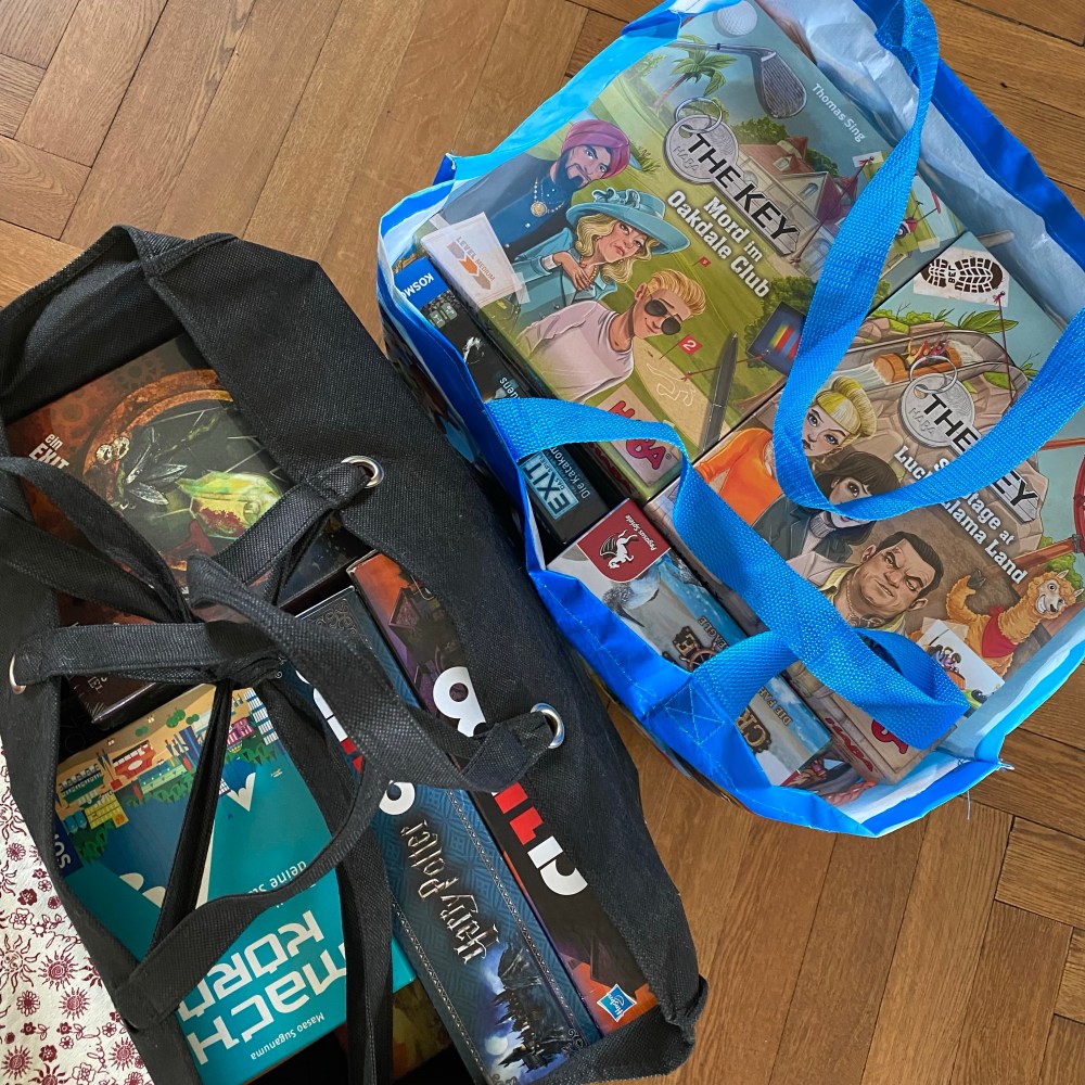 [kneteeis:] „Puh, das sind ganz schön viele Spiele: Die, die der große Junge gerne mitnehmen möchte; die, die das kleine Mädchen hier Anfang der Woche gespielt hat und mitnehmen möchte; die, an die sich das große Mädchen vom letzten Jahr erinnert und mitnehmen möchte – und dann noch ein paar, die ich gerne mitnehmen möchte…“