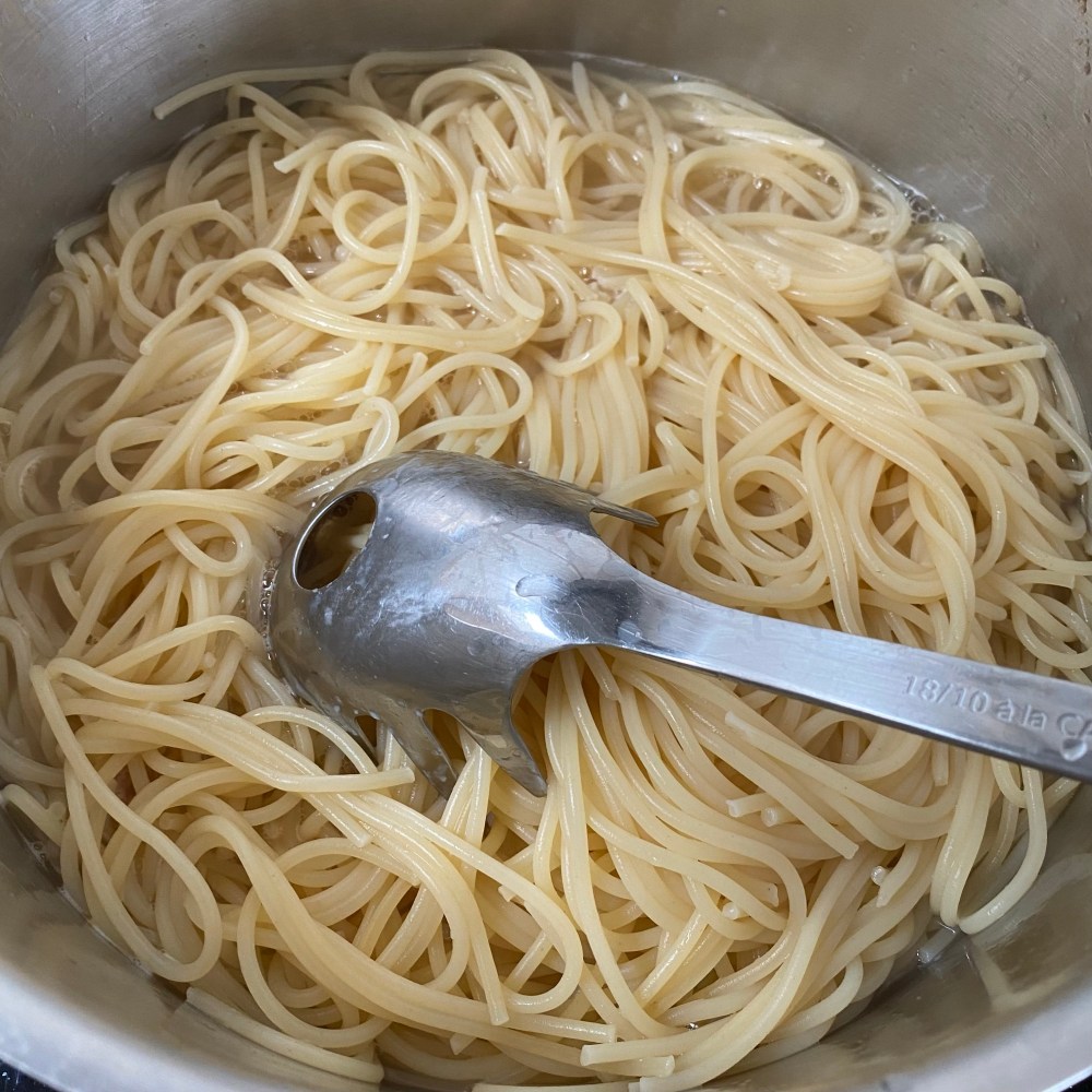 [kneteeis:] „Super. Ich mache inzwischen die Spaghetti und die Sauce fertig.“