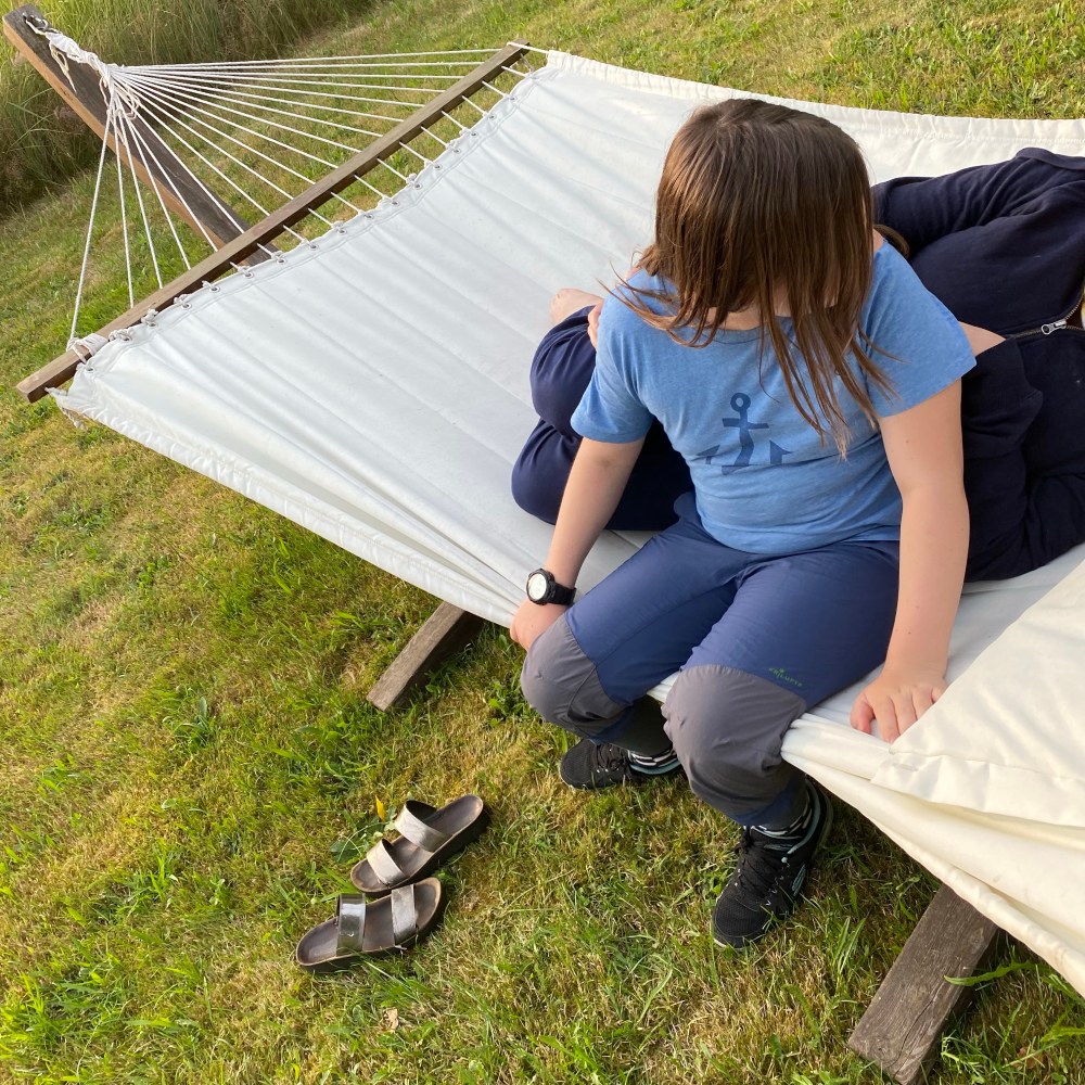 [folienstern:] „Oh, die Hängematte ist draußen! Hast Du die schon ausprobiert?“