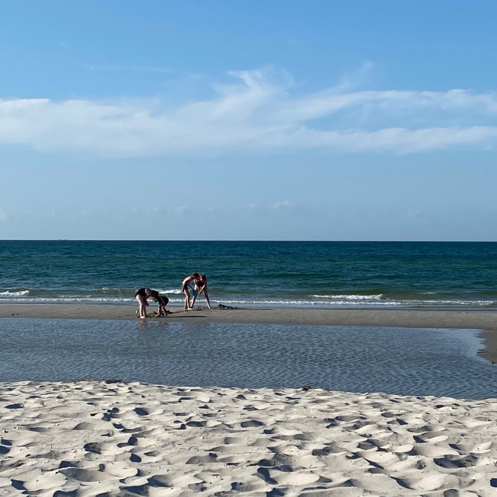 [Kurz darauf am Strand. Alle Kinder:] „Das Meer ist wirklich weg! Wie folienstern heute früh erzählt hat! Dürfen wir jetzt ganz tief rein, weil es nicht so tief ist?“