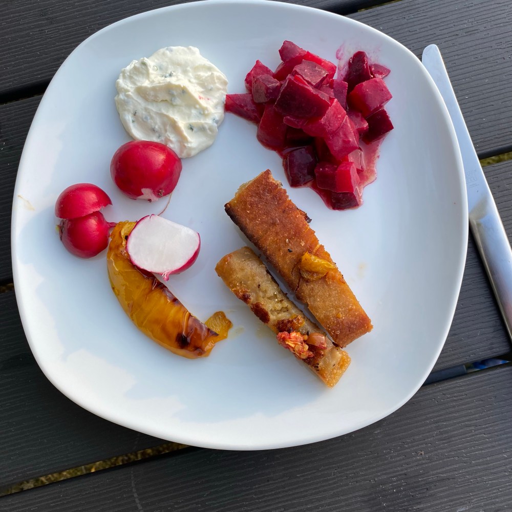 [GM, GJ, KM, KJ:] „Darf ich von der Foccaccia? Und von dem Bete-Salat? Und vom Schnittlauchquark? Und von der Paprika? Und Apfelmus zu den Bratwürstchen?“