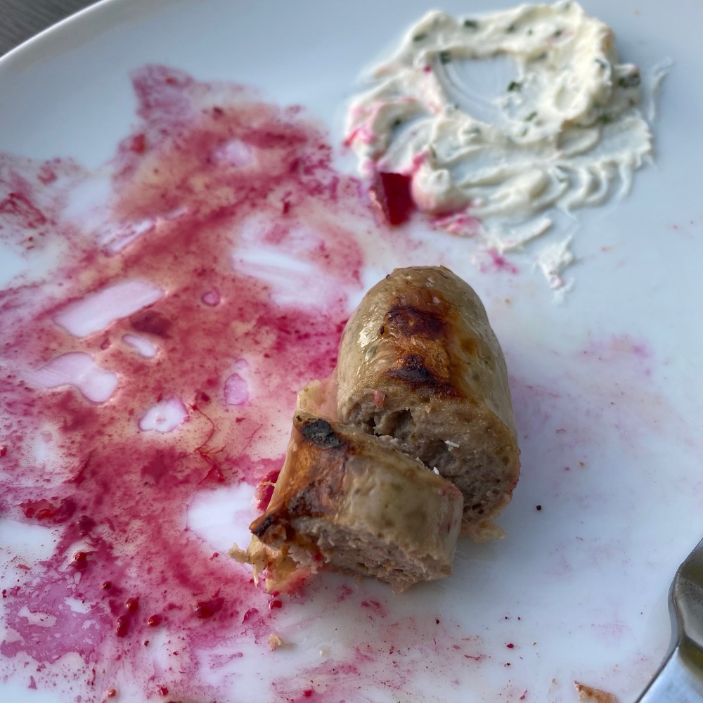 [Wenig später. GJ:] „Puh, jetzt bin ich aber satt. Magst Du noch mein letztes Würstchenstück?“