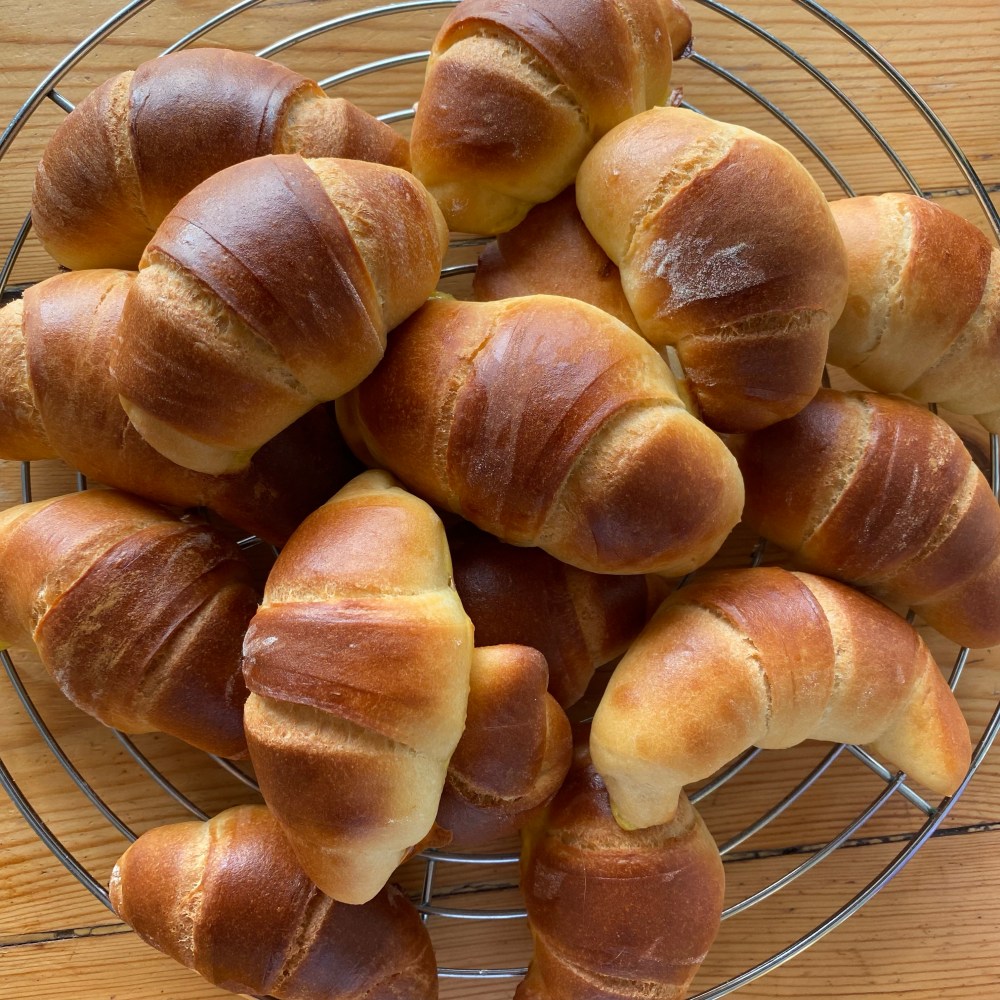 [kneteeis:] „Hmm, die Butterhörnchen sind ganz gut gelungen. glaube ich. Mal gucken, wann die anderen aufstehen…“