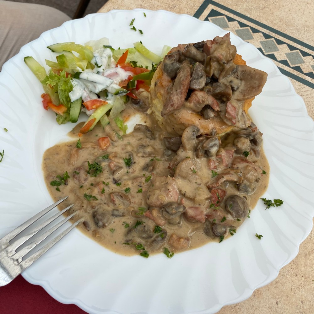 [GM:] „Okay. ich probiere, und wenn’s mir nicht schmeckt, mache ich mir Kartoffelklöße.“