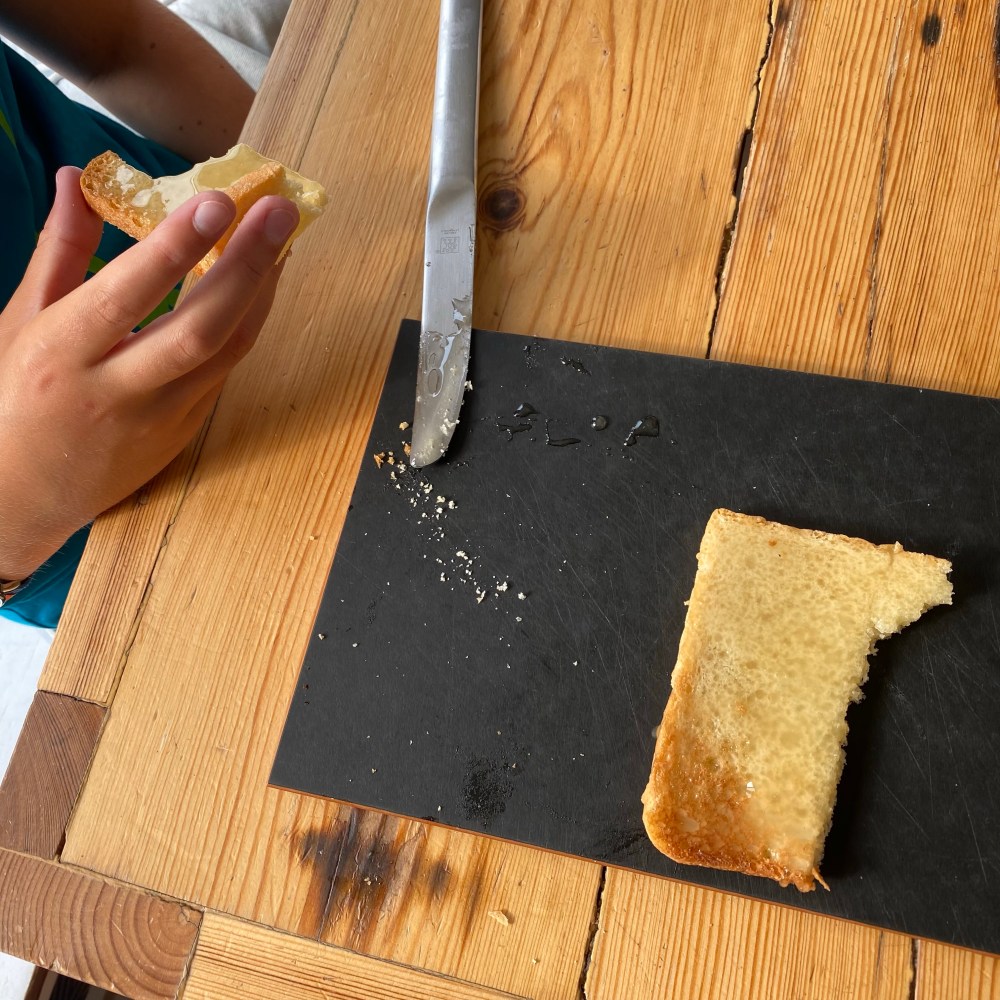 [Etwas später. kneteeis:] „So. Jetzt ist alles im Auto, und sauber gemacht haben wir auch. Isst Du noch den Honigtoast auf?“