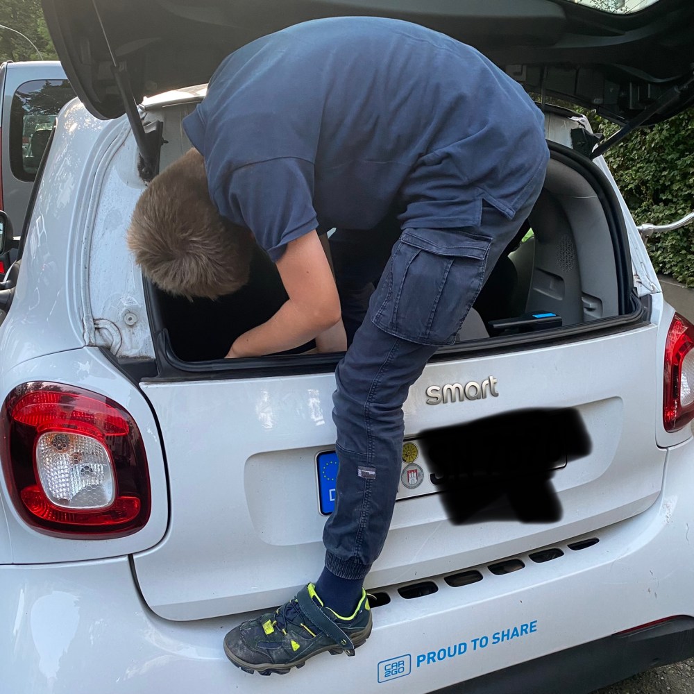 [GJ:] „Nein, ich klettere durch den Kofferraum!“