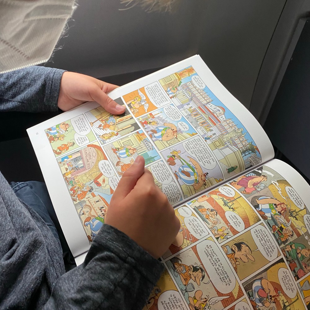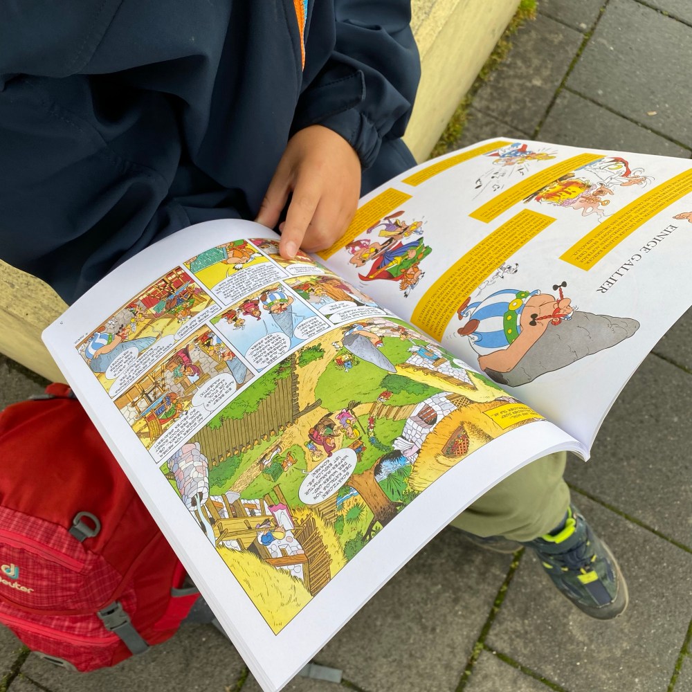 [GJ:] „Darf ich mir noch ein Asterix-Heft für die Fahrt aussuchen?“