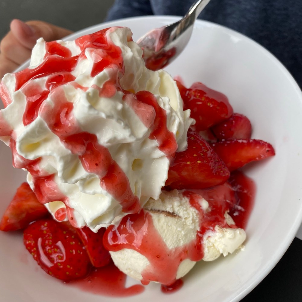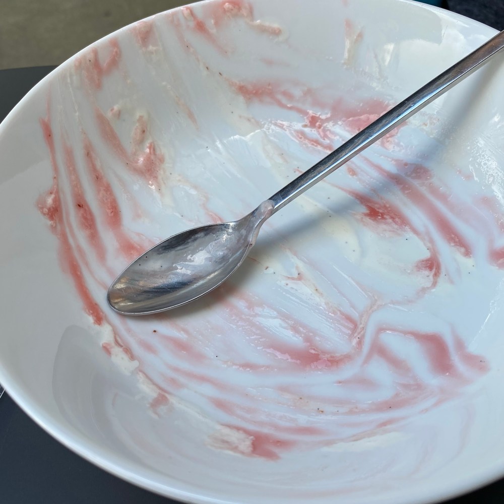 [Kurz darauf. GJ:] „Hmmm, der Erdbeerbecher war sogar besser als der im Eiscafé Lange in Wieck!“