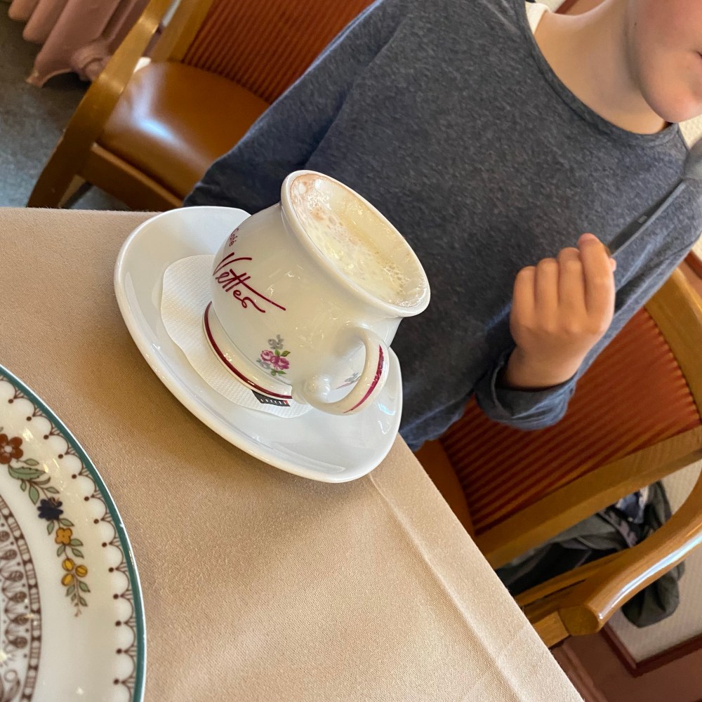 [Etwas später im Café Vetter. GJ:] „Ich nehme eine Tasse heiße Schokolade!“