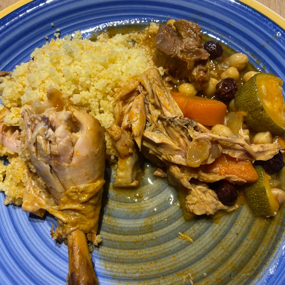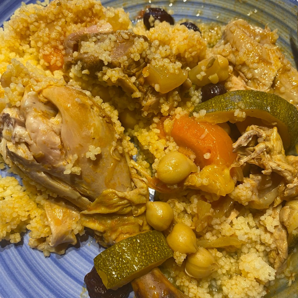 [Tante:] „Ich habe zum ersten Mal in meinem Leben Couscous nach Rezept gekocht. Ich bin gespannt, wie es Euch schmeckt!“