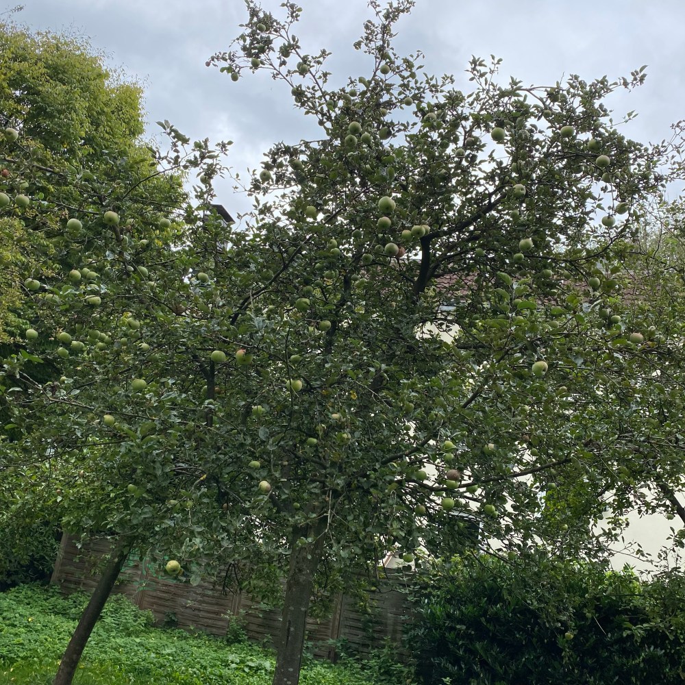 [kneteeis:] „Guck mal, hier sind Äpfel am Baum – und ein paar auch auf dem Boden! Nehmen wir welche mit?“